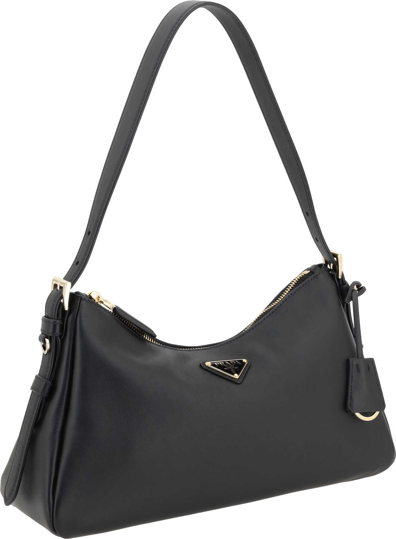 Prada's Aimée Medium leather Shoulder Bag is a stylish and functional accessory perfect for a sophisticated, everyday look. The zippered top closure provides security, while the adjustable flat shoulder strap offers the option to wear it comfortably on the shoulder. The brand's iconic triangular plaque applied to the front is a hallmark of Prada's luxury and authenticity. An applied charm at the base of the handle adds a touch of sophistication, while the unique interior compartment offers ample space for essentials.