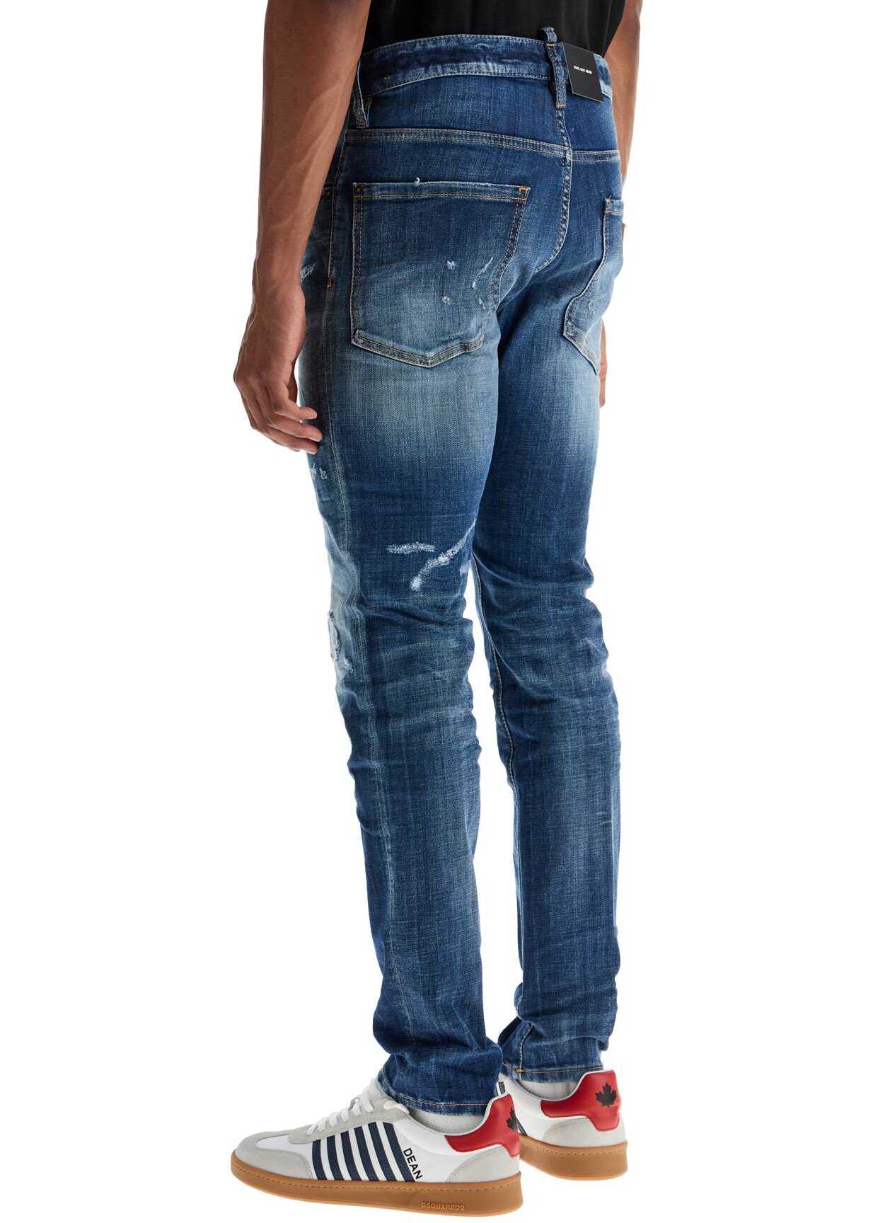 The DSQUARED2 Cool Guy jeans offer contemporary style and comfort. Navy blue denim with vintage effect, slim fit, and high waist for a distinctive look. Italian design that combines elegance and authenticity.