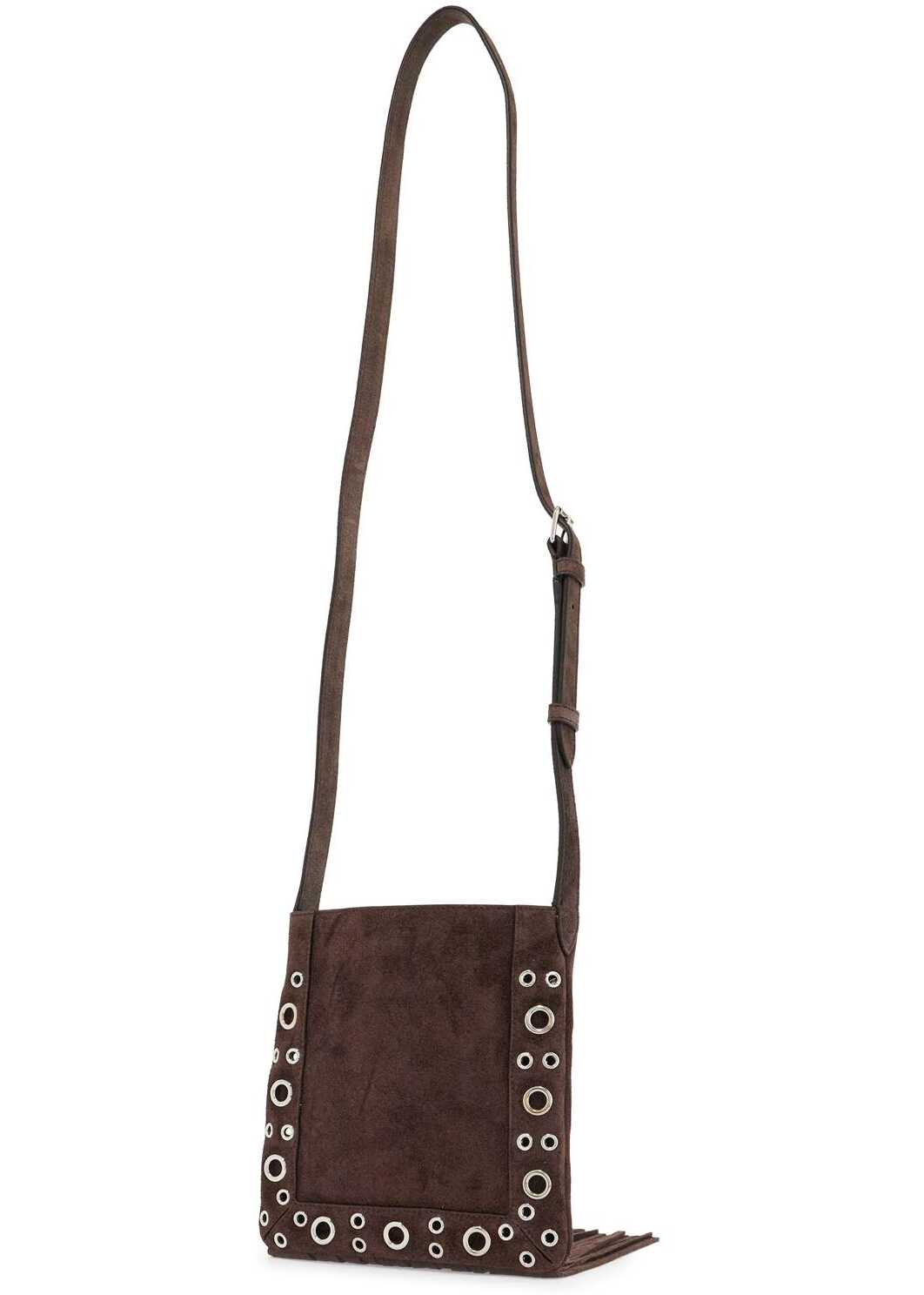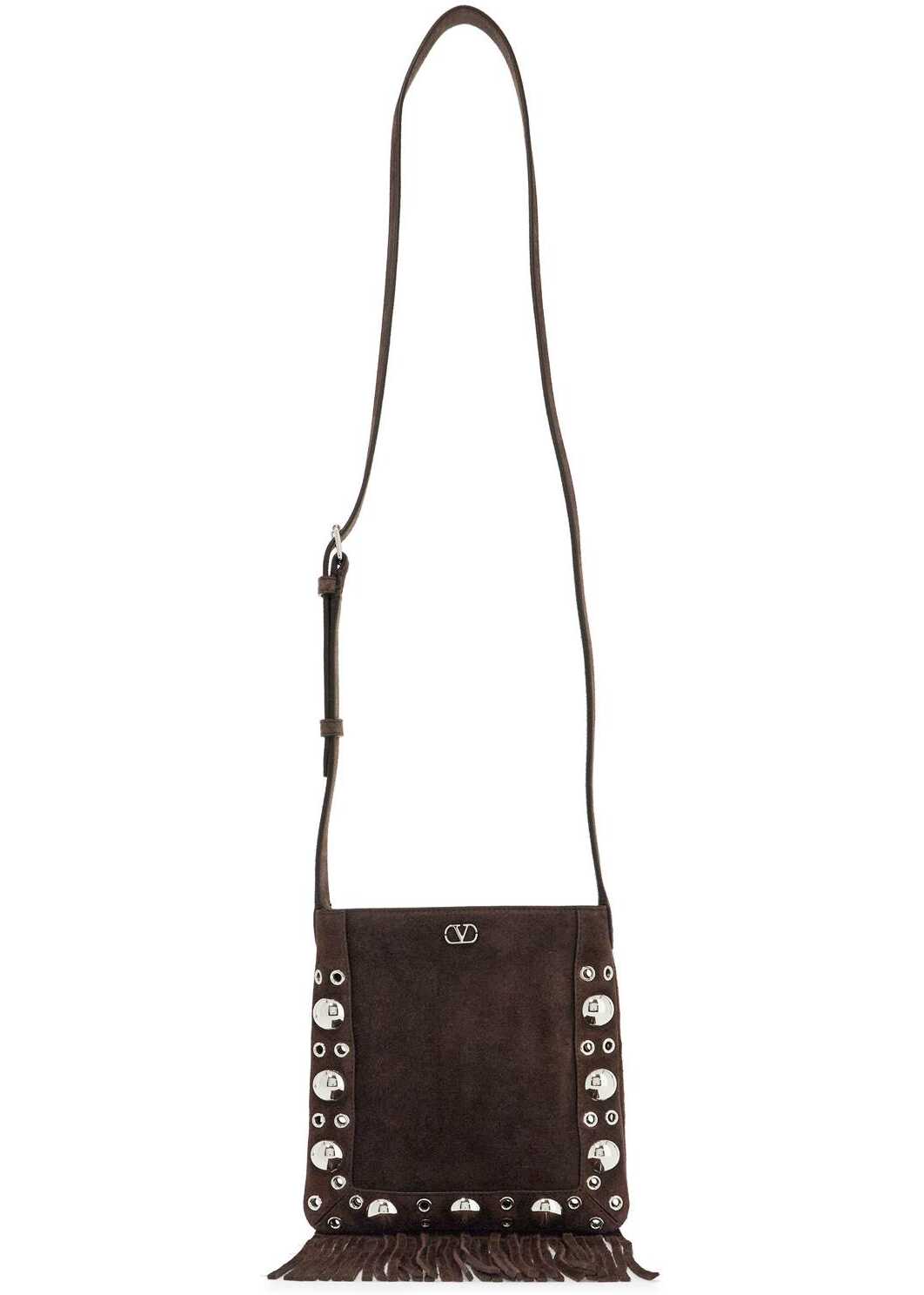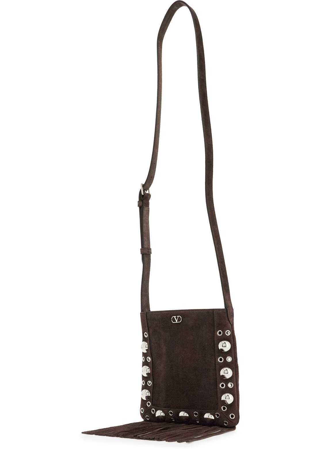 The Valentino Garavani crossbody bag in dark brown suede combines elegance and functionality. With metal studs and fringe, it is the perfect accessory for spring summer fashion 2025.