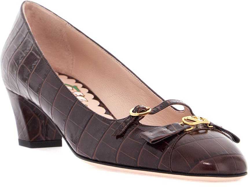 The Valentino Garavani pumps in crocodile effect leather offer Italian elegance and comfort. With medium heel and decorative bow, they are versatile for any occasion