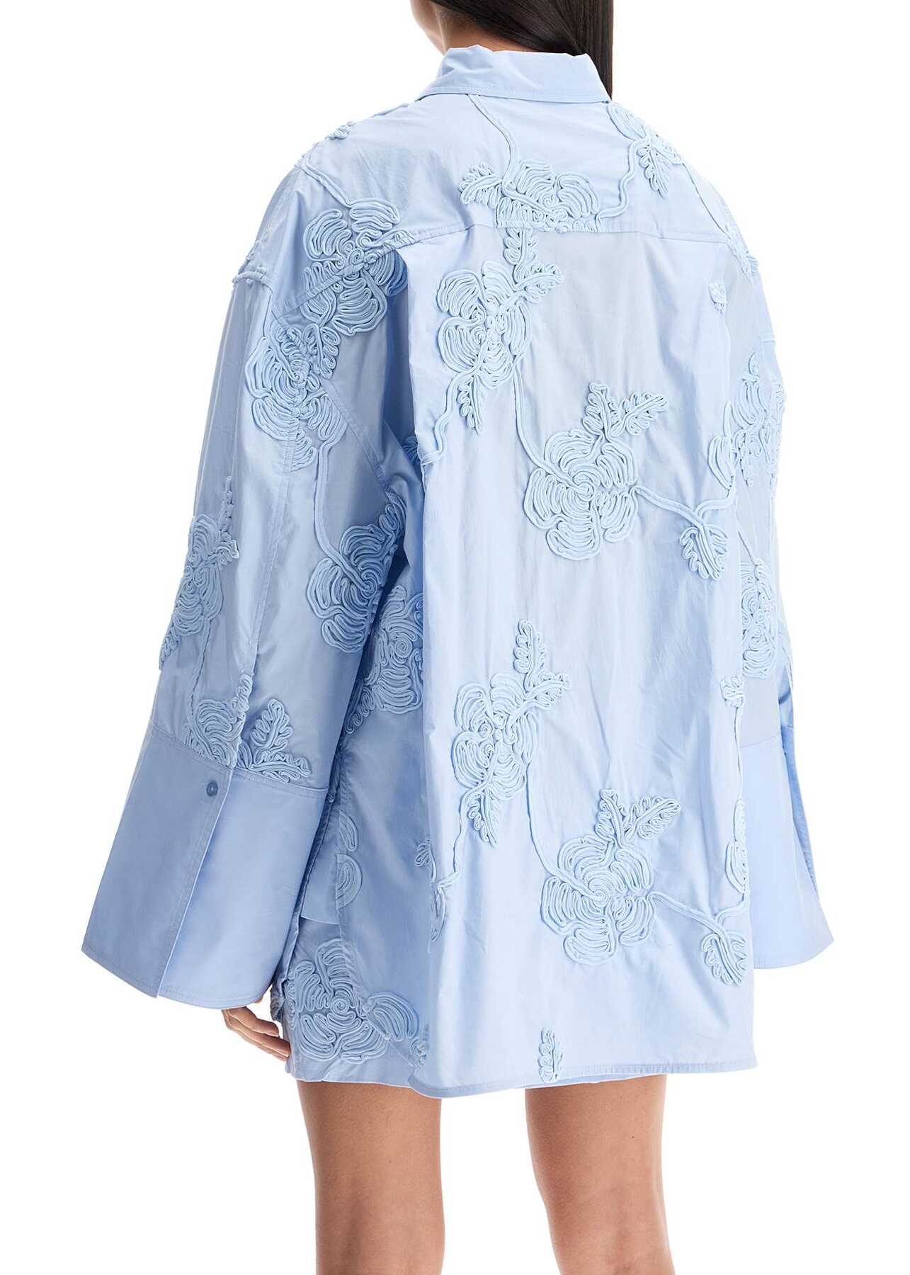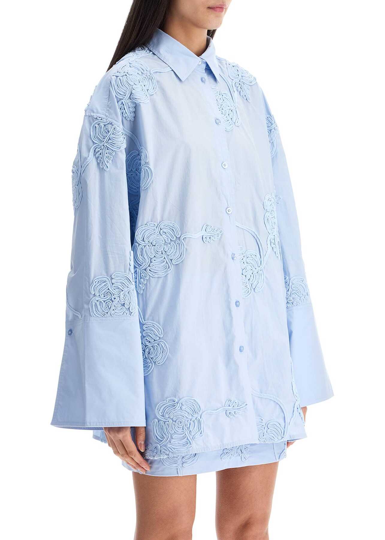 The FLOWER oversized shirt by ROTATE offers elegance in floral cotton. Oversized design with flared sleeves and embossed decoration. Perfect for casual and formal looks in spring summer.