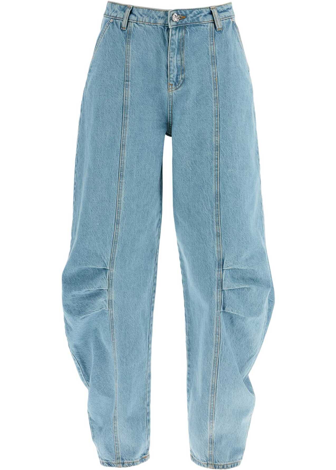 The ROTATE jeans redefine contemporary denim with sculptural design and high waist. Made from premium beige blue denim cotton, they offer a wide and flared silhouette for a sophisticated and versatile look.
