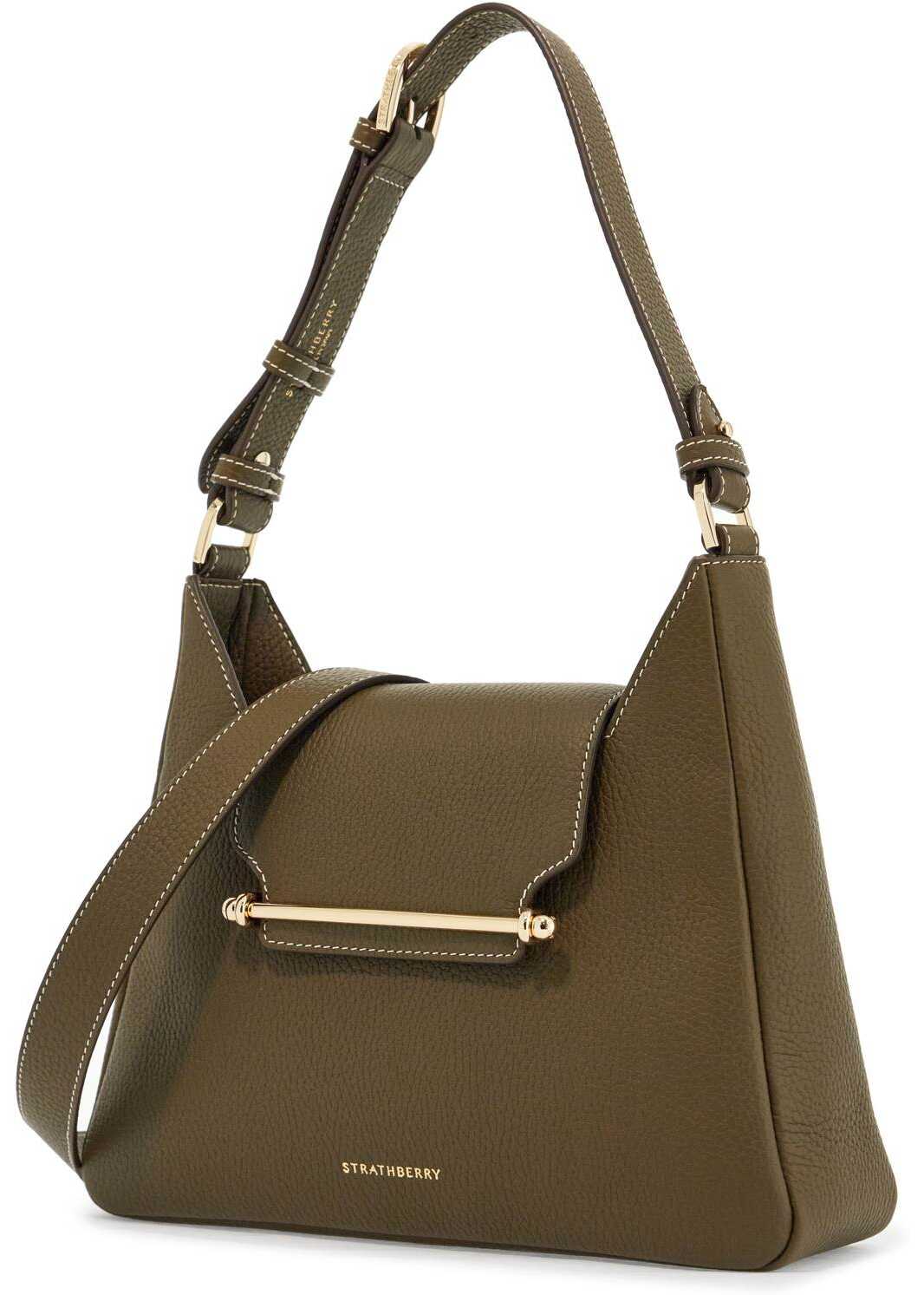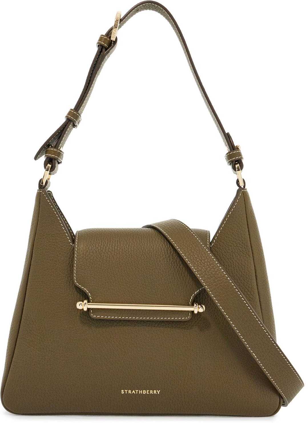 The Strathberry Multrees Hobo is a khaki bag made of Spanish calf leather. Elegant and versatile, it features gold details and ample space. Perfect for those seeking a contemporary luxury accessory.