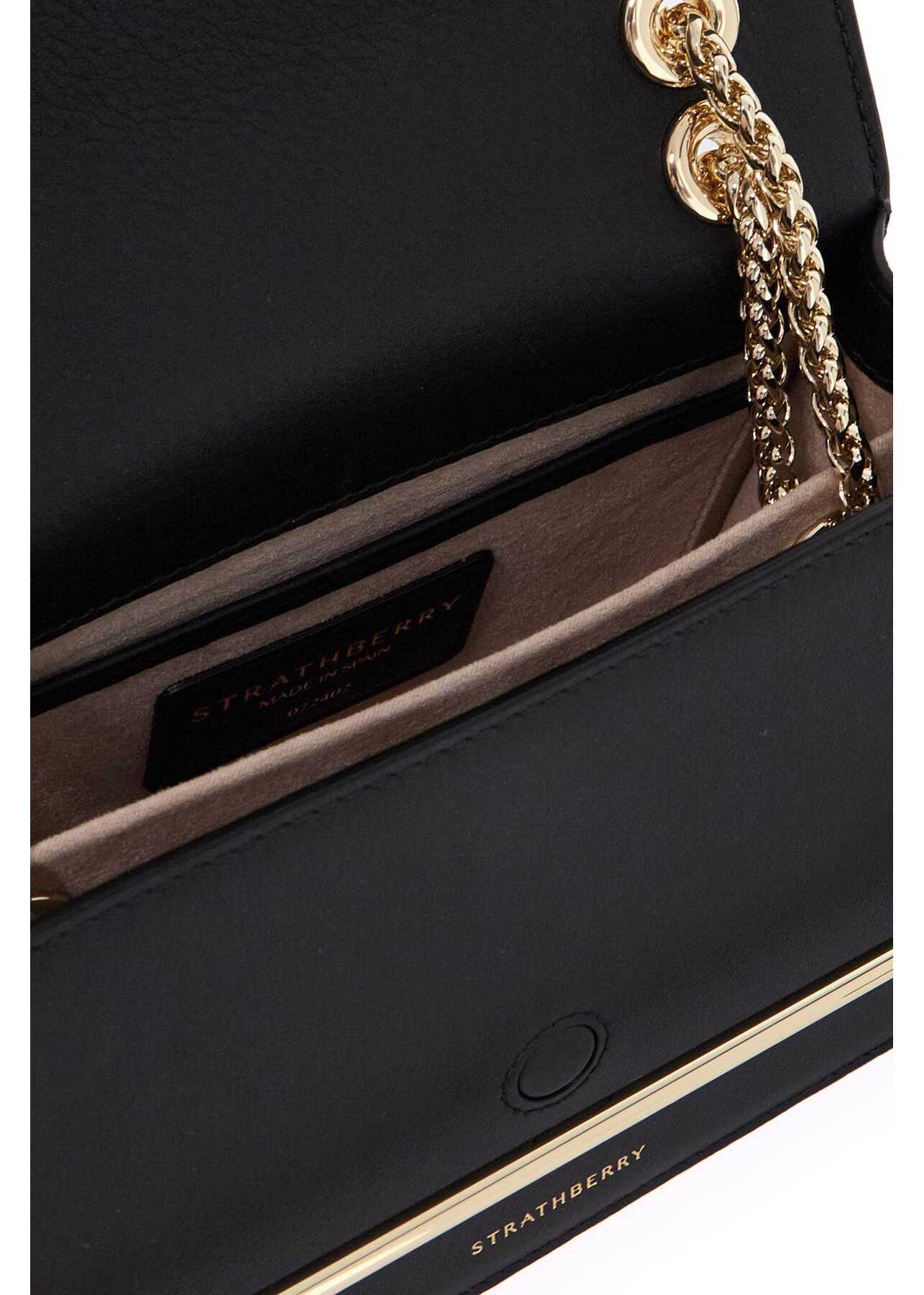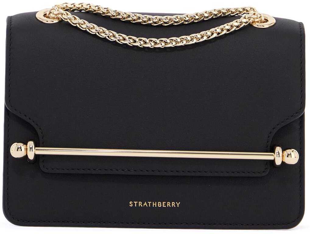 The Strathberry Mini East/West Bag offers timeless elegance. Made from black calfskin with gold details, it combines Italian design and practicality for a versatile and refined fashion accessory.