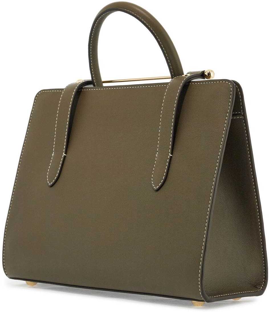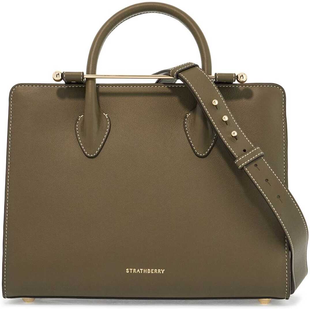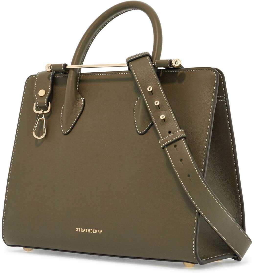 The MIDI TOTE by Strathberry is a khaki handbag made of Italian calf leather. Versatile design with adjustable shoulder strap and gold details. Elegance and functionality for the modern woman.