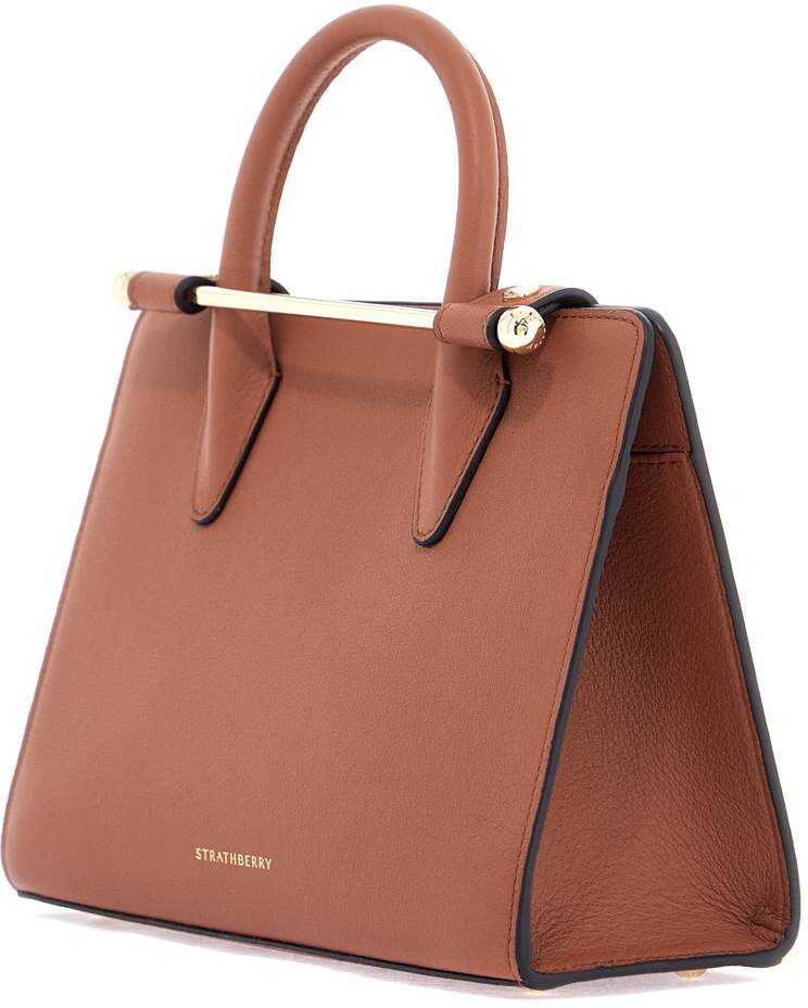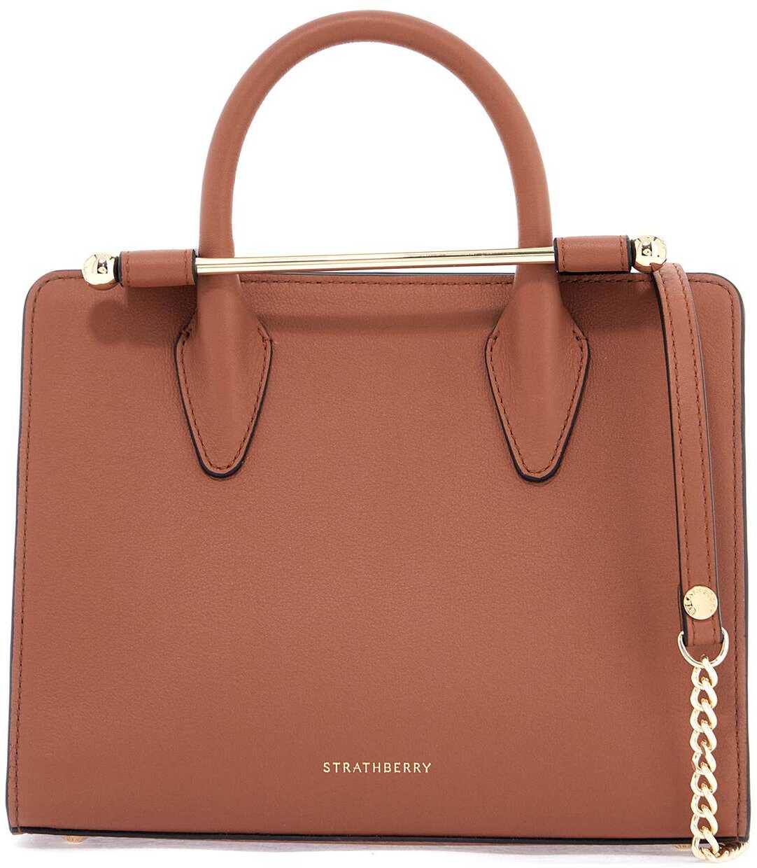 The STRATHBERRY Mini Tote is an elegant bag in calfskin chestnut color with unique details. Compact and versatile with a removable shoulder strap, it combines luxury and functionality for a sophisticated look