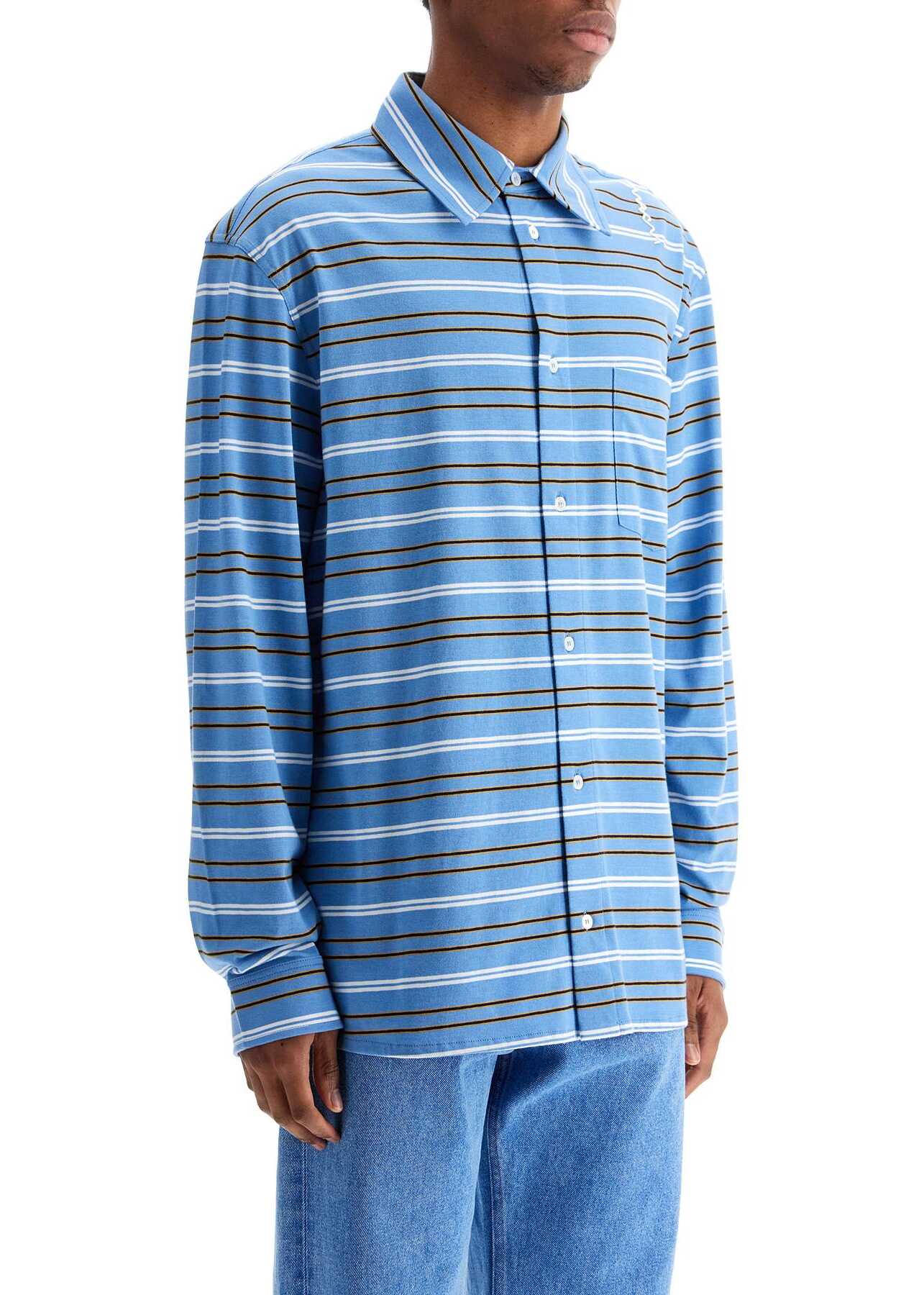 The MARNI turtleneck polo offers timeless elegance. In light blue cotton with horizontal stripes, it combines Italian style and comfort. Perfect for Spring Summer fashion, it elevates any casual or semi-formal look.