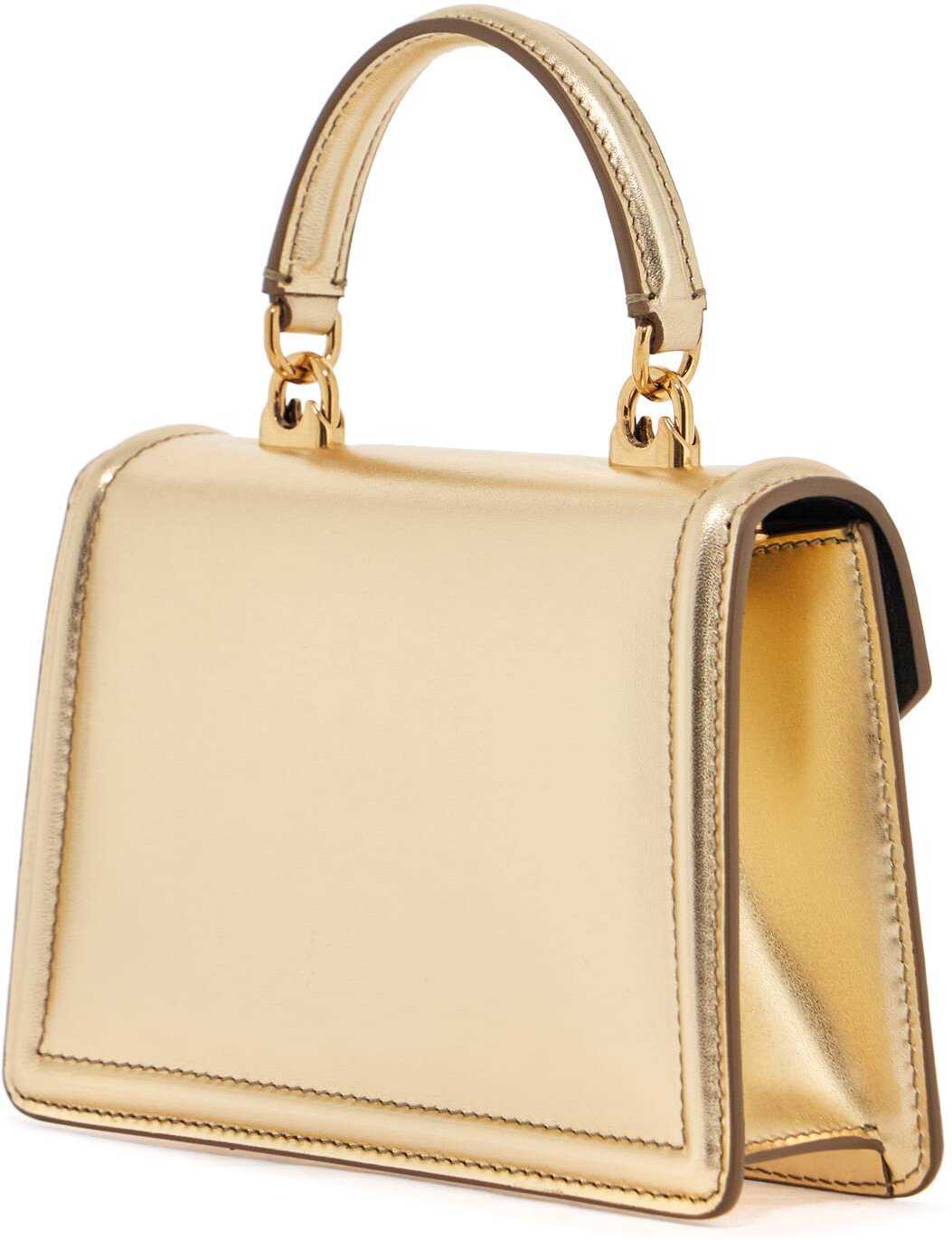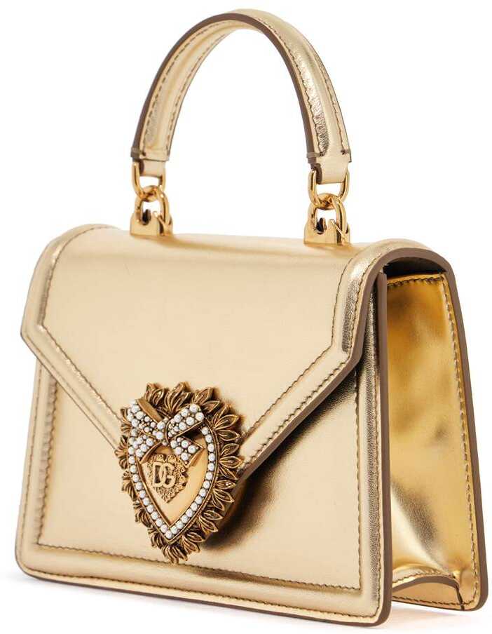 The Dolce & Gabbana shoulder bag in gold nappa offers Italian luxury. With a heart decorated with crystals and a chain strap, it combines elegance and versatility for a sophisticated look.