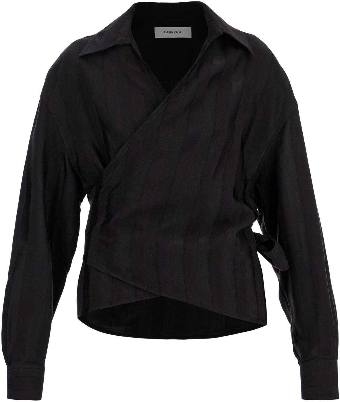 The JOURNEY W'S NIVES wrap shirt by Golden Goose offers timeless elegance. Made from jacquard of viscose and cotton, with a striped design and unique details. Perfect for any occasion, it embodies Italian style.