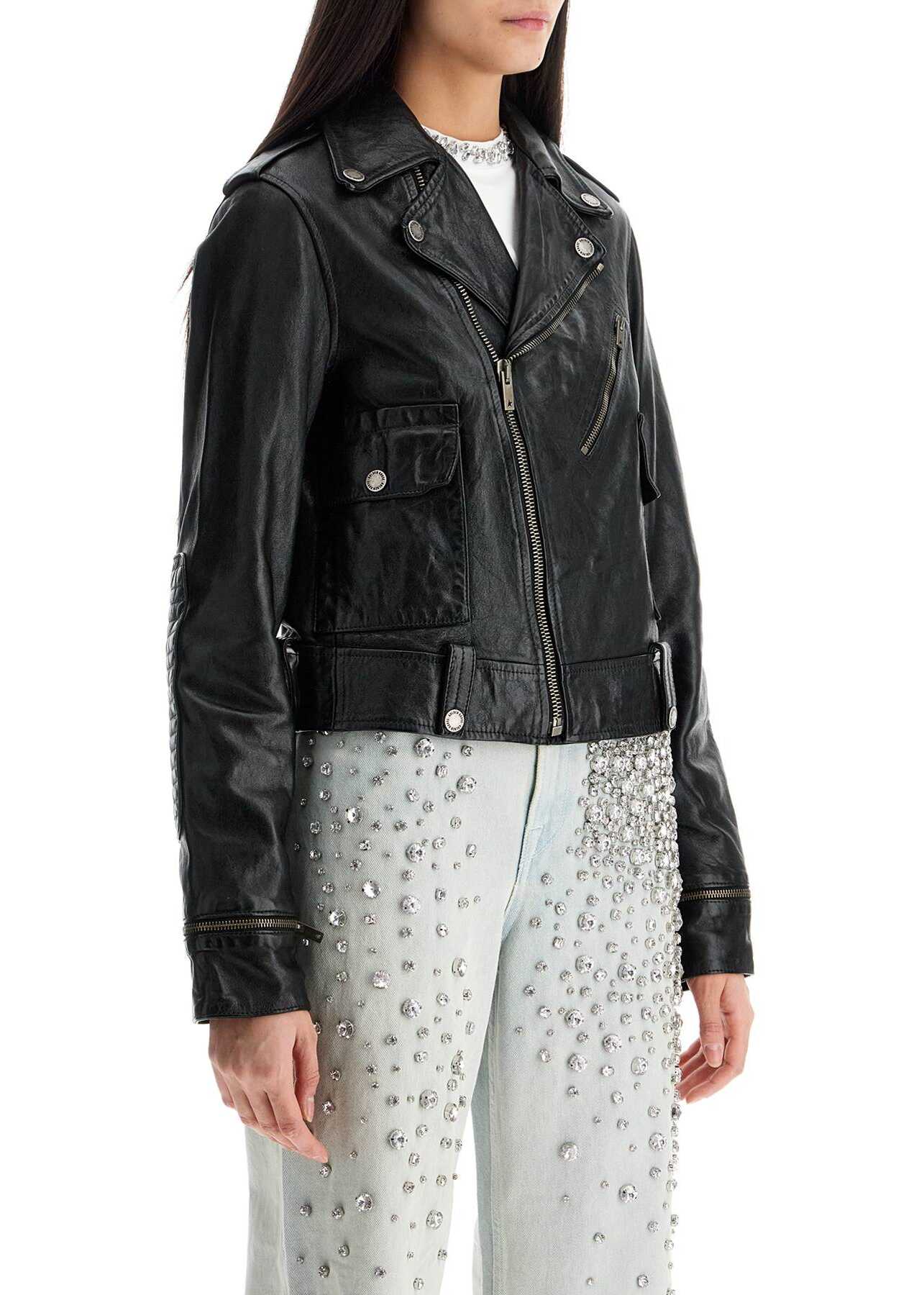 The women's biker jacket from Golden Goose is a masterpiece of Italian fashion in sheepskin. Iconic design with zip and pointed collar for a bold and versatile look. Contemporary elegance without compromise.