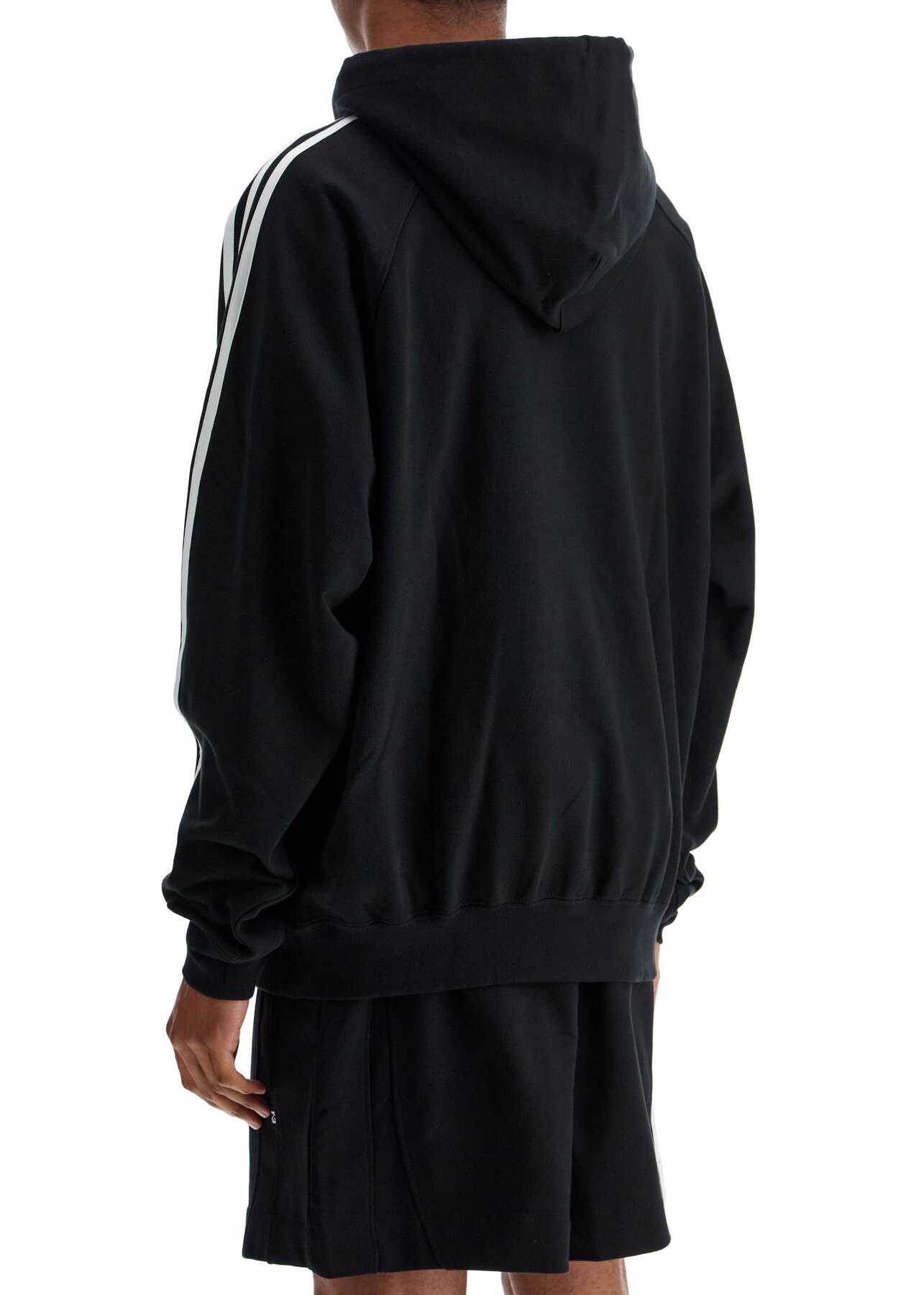Black Cotton And Recycled Polyester Hoodie With White Raglan Stripes