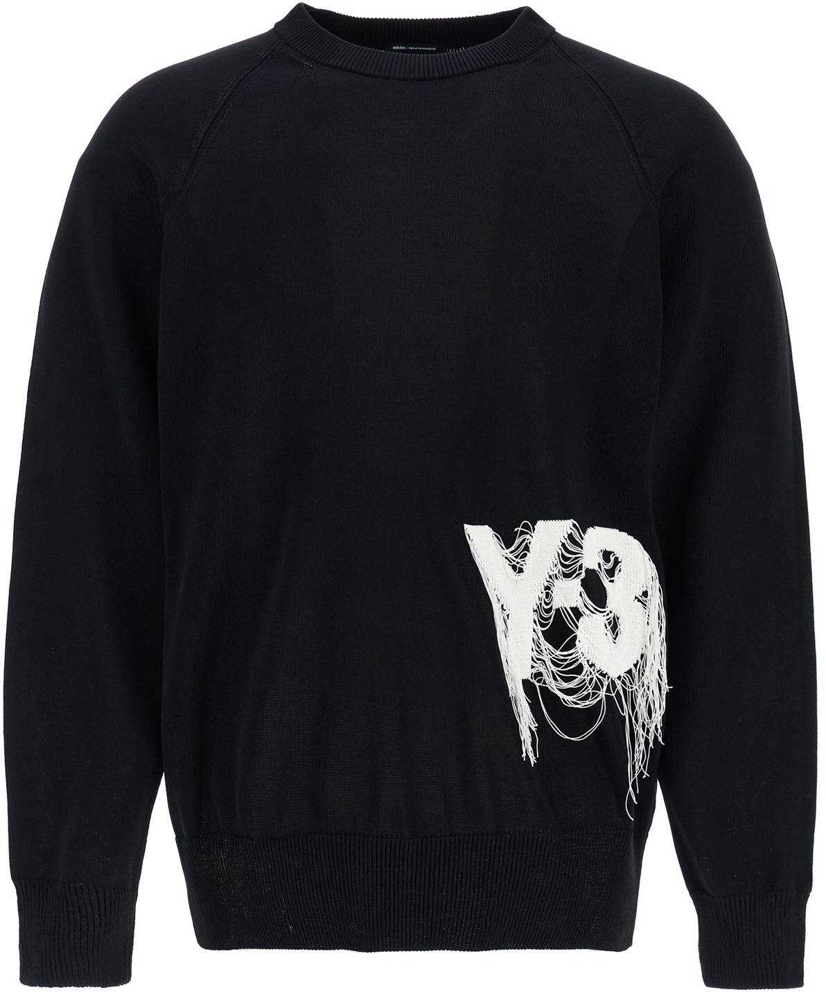 The Y-3 KNIT CREW men's sweater offers sustainable elegance in recycled polyester. Modern design with a wide silhouette and embroidered Y-3 graphic. Combines contemporary style and environmental responsibility.