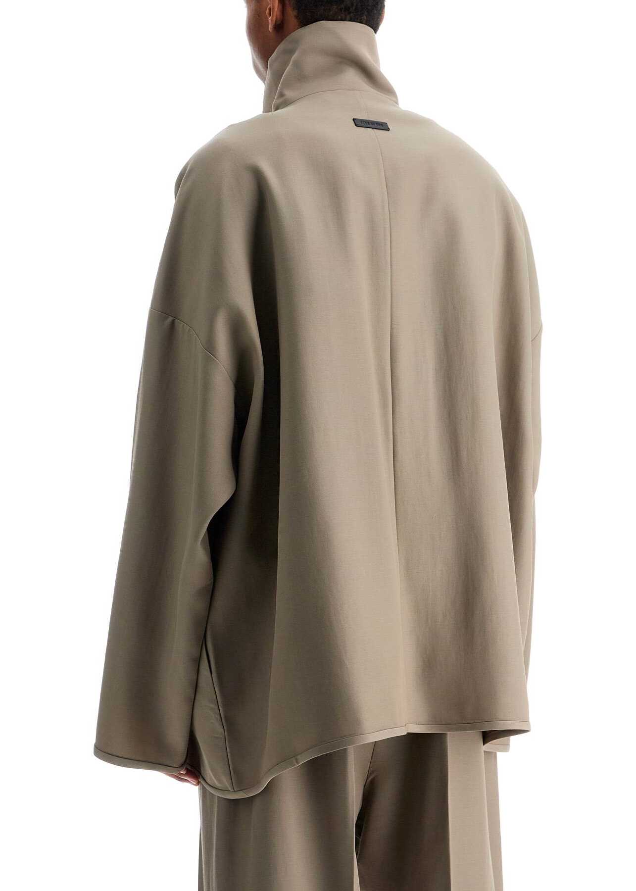 The FEAR OF GOD high collar jacket combines Italian elegance and contemporary design. Made from wool and viscose, it offers comfort and style. The Dusty Beige color and wide silhouette make it a versatile and refined piece.