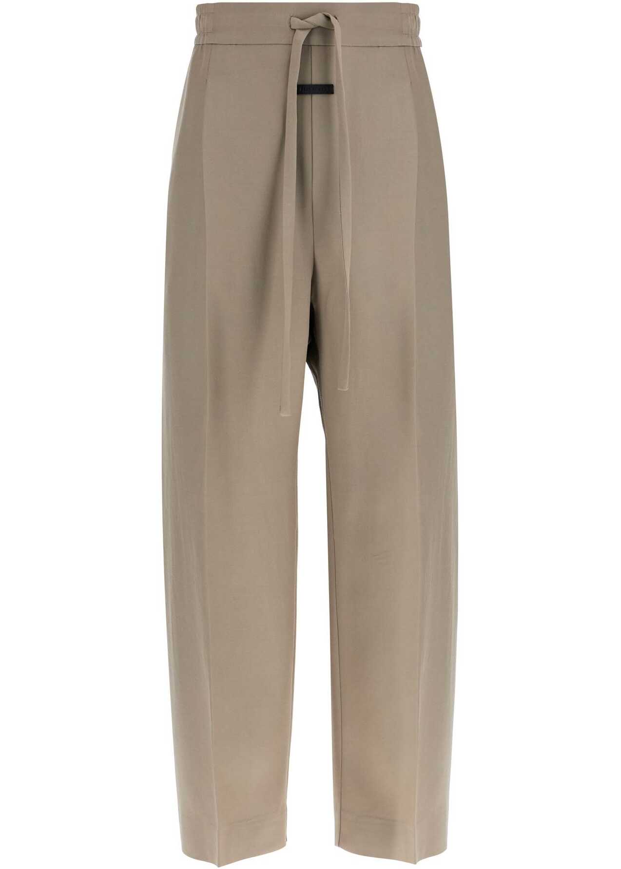 The FEAR OF GOD wide leg pants offer contemporary luxury in wool and viscose. Elegant beige with a high elasticized waist and front pleats for comfort and sophisticated style for any occasion