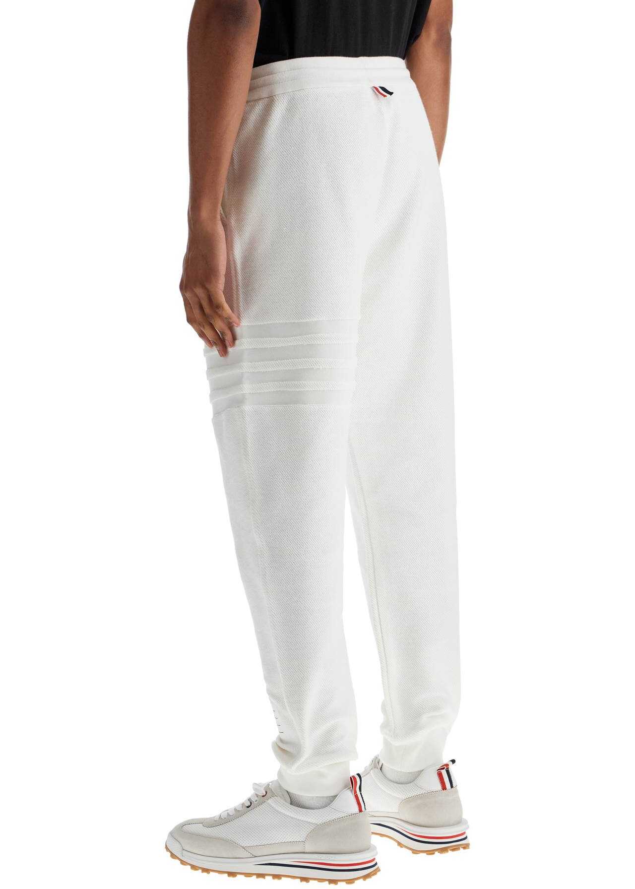 The Thom Browne sweatpants offer contemporary style and comfort. Made in Italy with quality cotton, they feature a slim fit design and the brand's iconic stripe for a refined look.