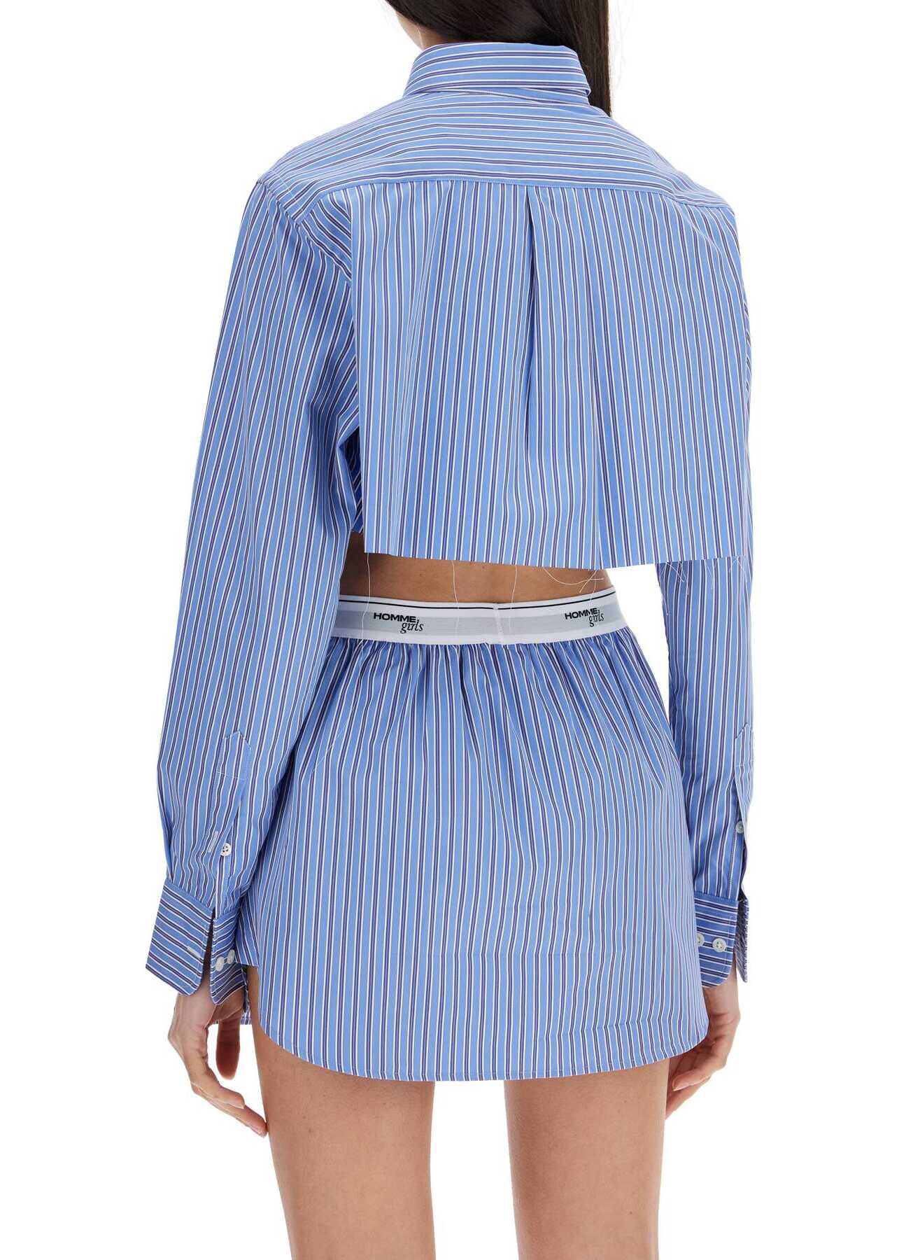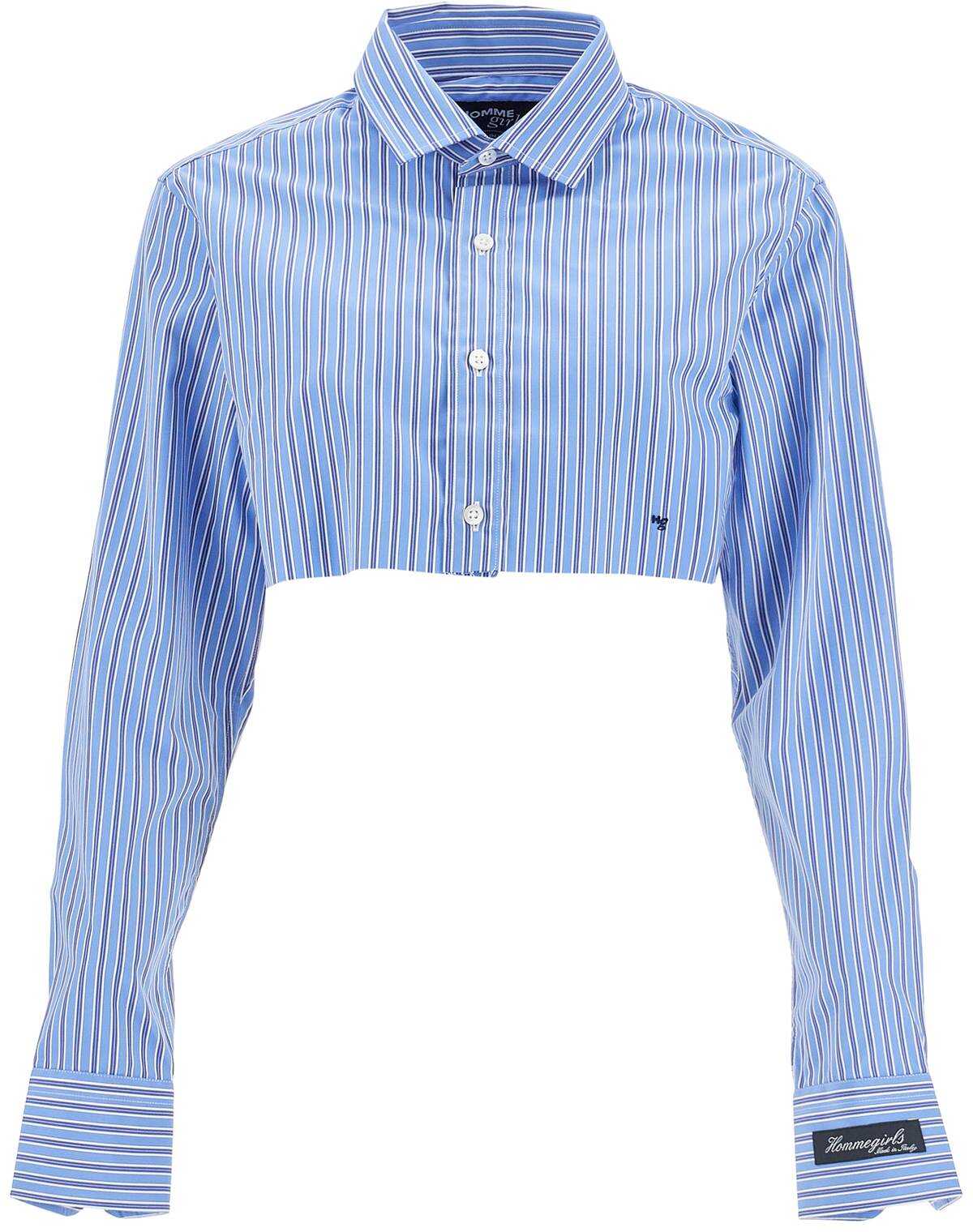 The cropped shirt from HOMME GIRLS embodies spring summer style. Made of cotton with blue stripes, it offers comfort and refinement. Super cropped design for a bold look made in Italy.