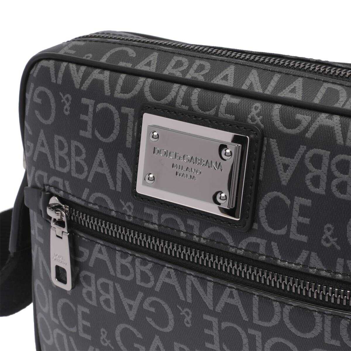 Dolce&Gabbana Black And Silver Messenger, Zip Closure, All Over Print Logo, Inner Open Pocket, External Zip Pocket, Adjustable Shoulder Strap, 18x21,5x5 cm
