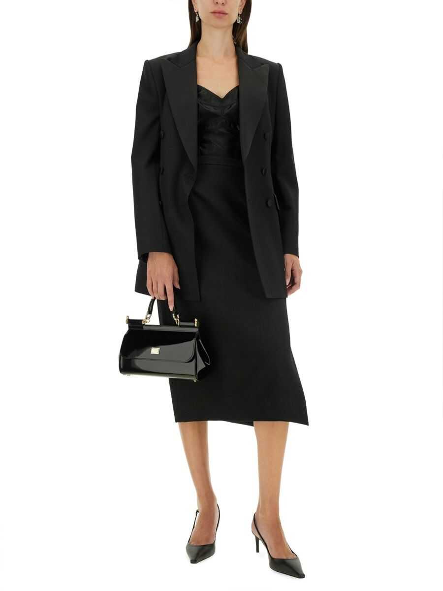 'Turlington' double-breasted wool canvas blazer with button closure, ducchesse peak lapels, flap pockets, back split and long sleeves