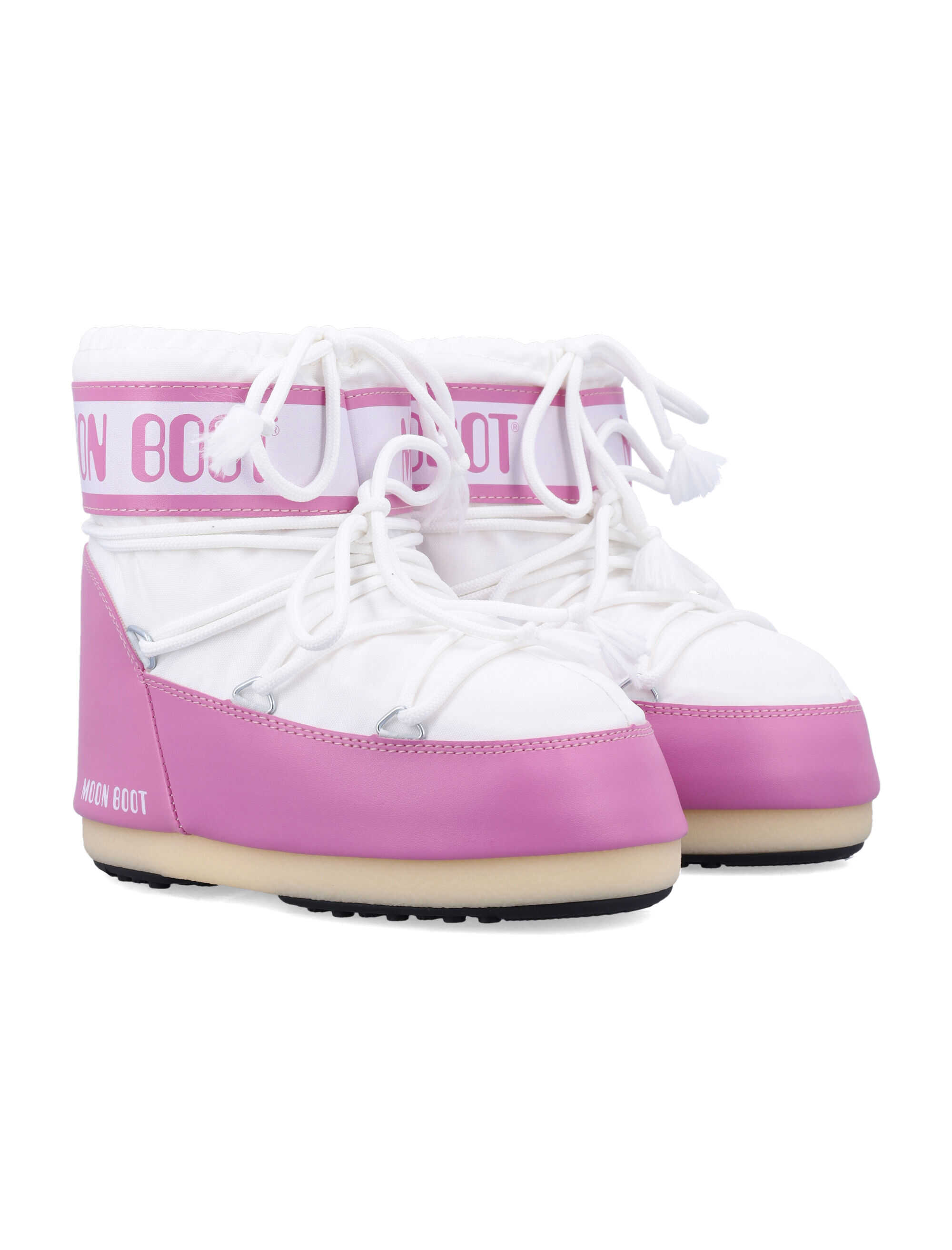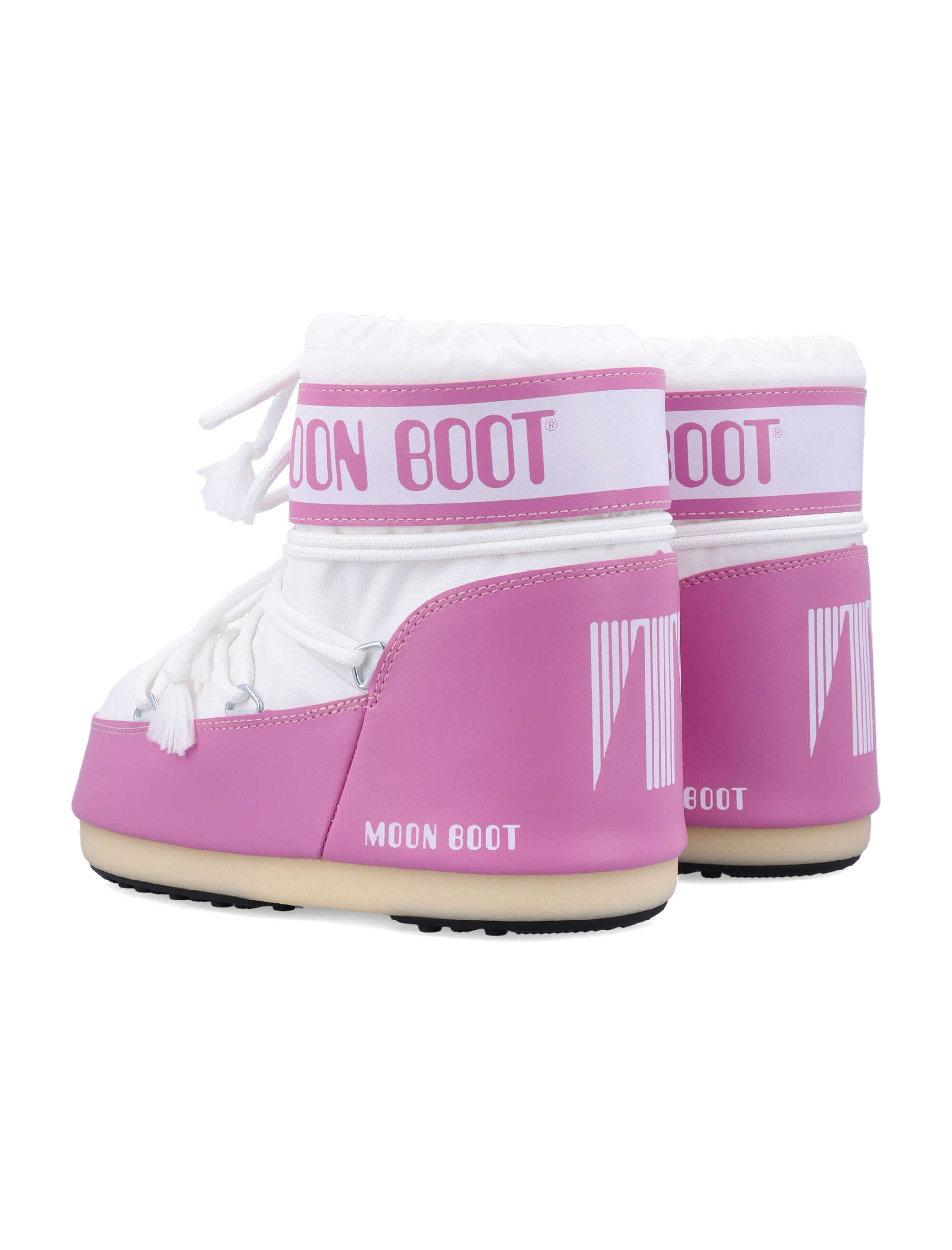 Step into style with the Icon Low Nylon Boots by Moon Boot. These chic, water-repellent boots offer comfort, a slip-on design, and durable materials. Ideal for any weather, they feature a modern logo and a unique criss-cross lace design.