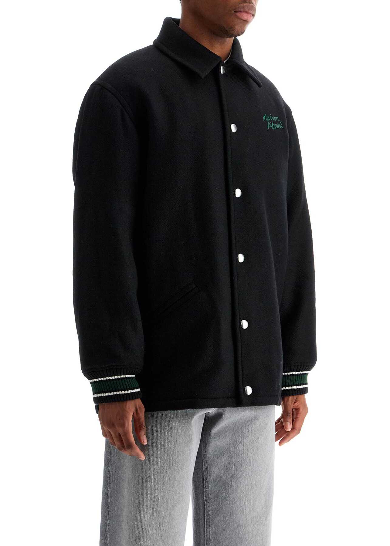 The Maison Kitsuné varsity jacket offers contemporary casual style. Made of Italian black wool with a wide design and embroidered details. Perfect for urban looks and informal occasions with a unique touch of class.