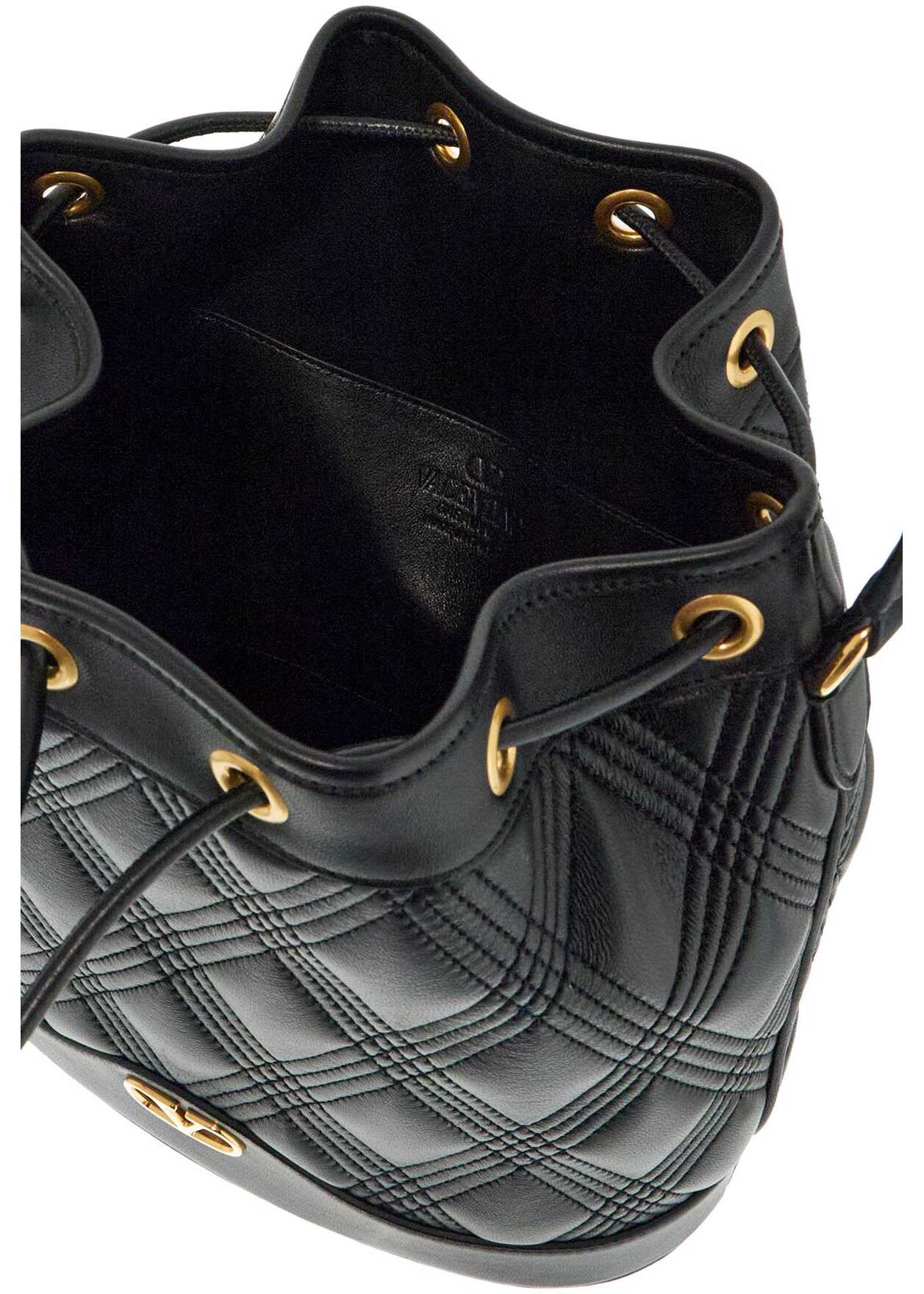 The Valentino Garavani drawstring bag combines elegance and practicality. In quilted black leather with gold details, it offers versatility with an adjustable shoulder strap. A timeless accessory for any occasion.