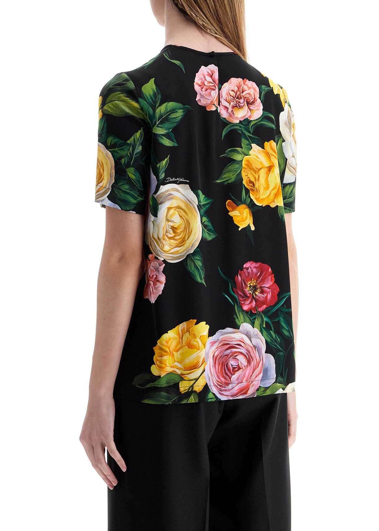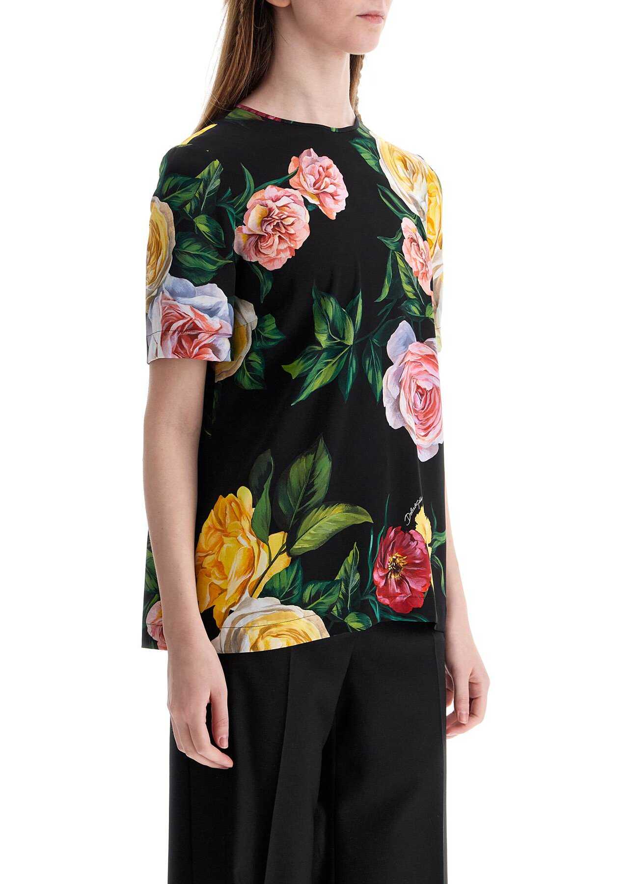 The DOLCE & GABBANA T-shirt in floral silk embodies Italian elegance. Made of 94% silk with a vibrant floral pattern on a black background. Comfortable fit for a sophisticated and versatile look.