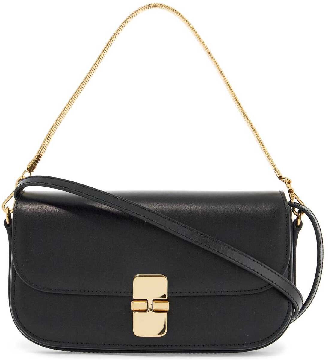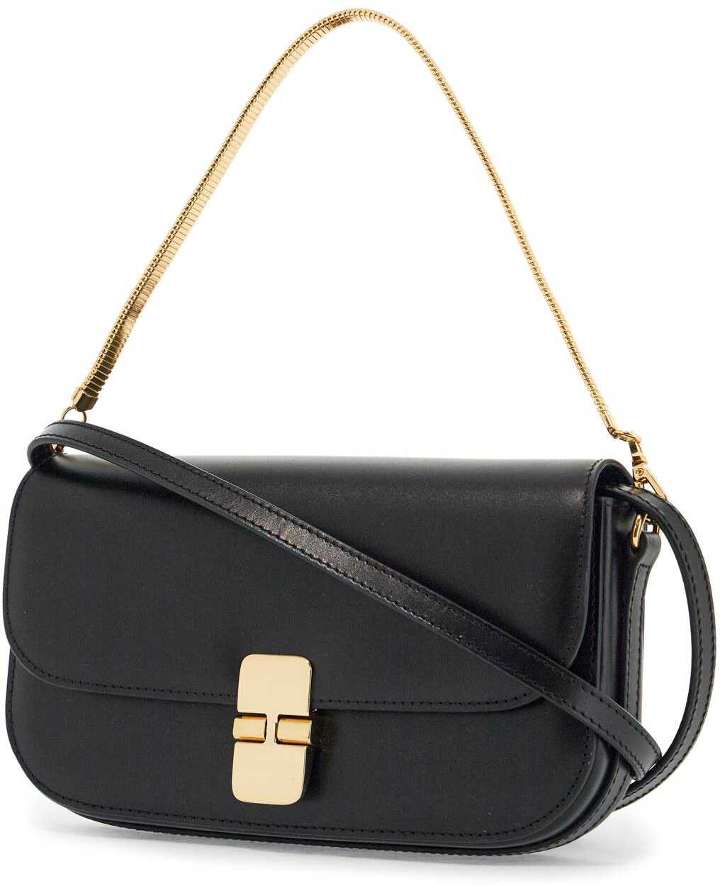 The Grace Clutch by A.P.C. is an elegant accessory made of black calf leather. Versatile with a removable shoulder strap and gold chain, it combines minimalist design and practicality for any occasion.