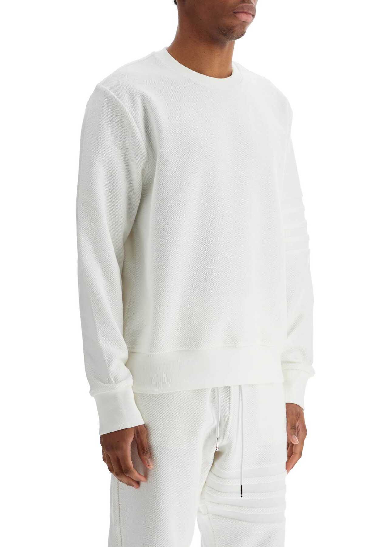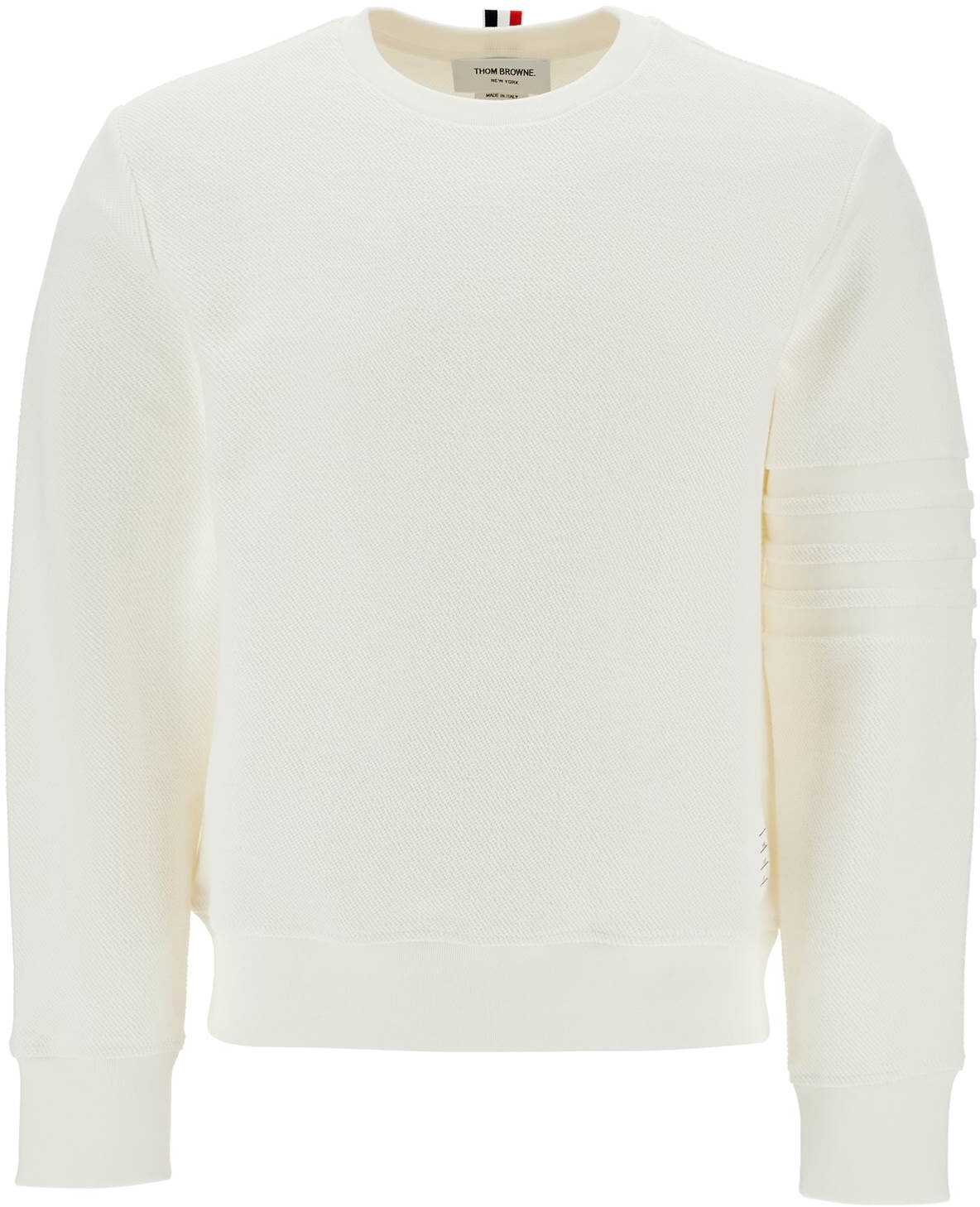 The THOM BROWNE four bar sweatshirt offers timeless elegance. In white cotton with a slim fit design and iconic stripes on the sleeves. Made in Italy for contemporary and versatile luxury.