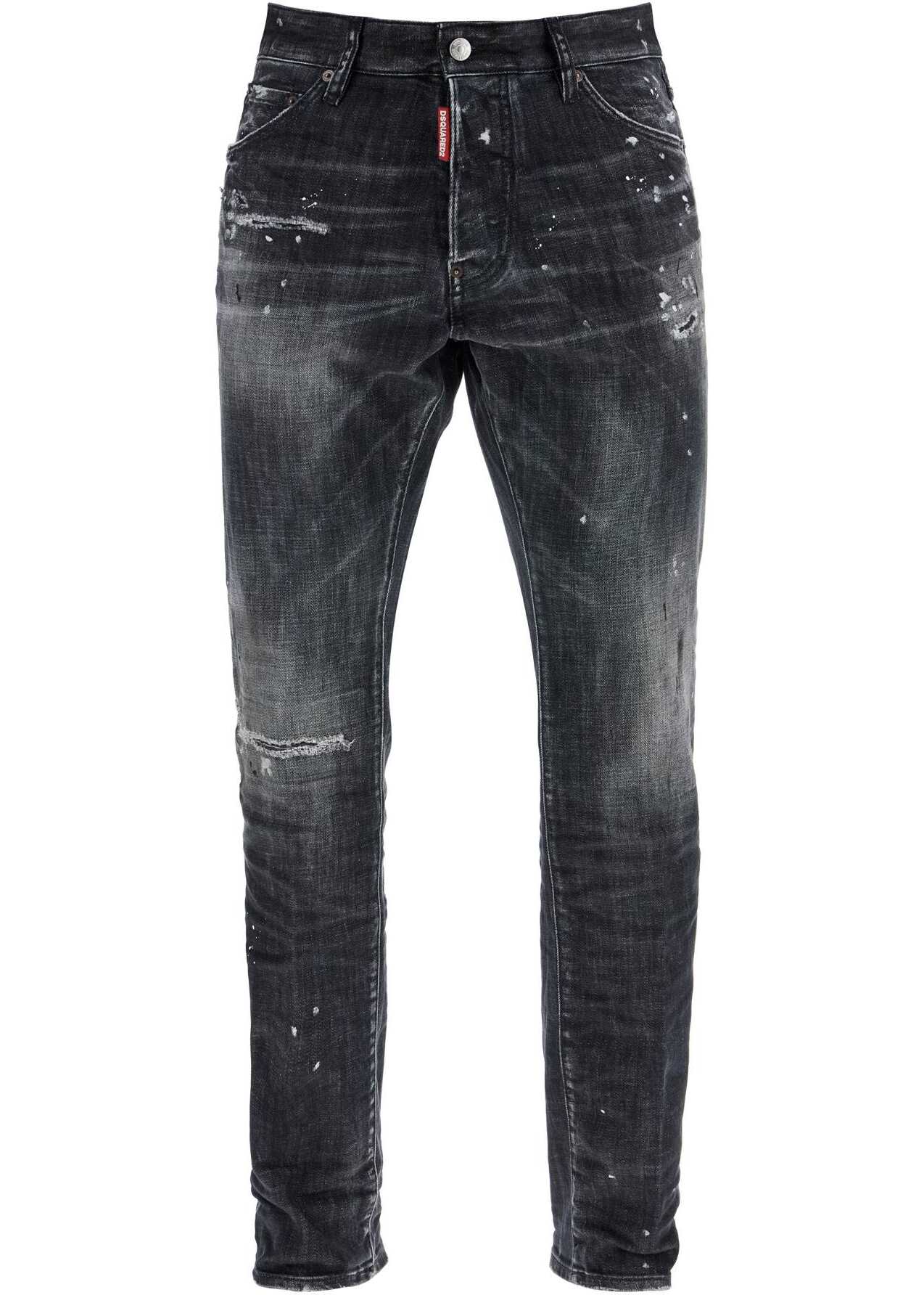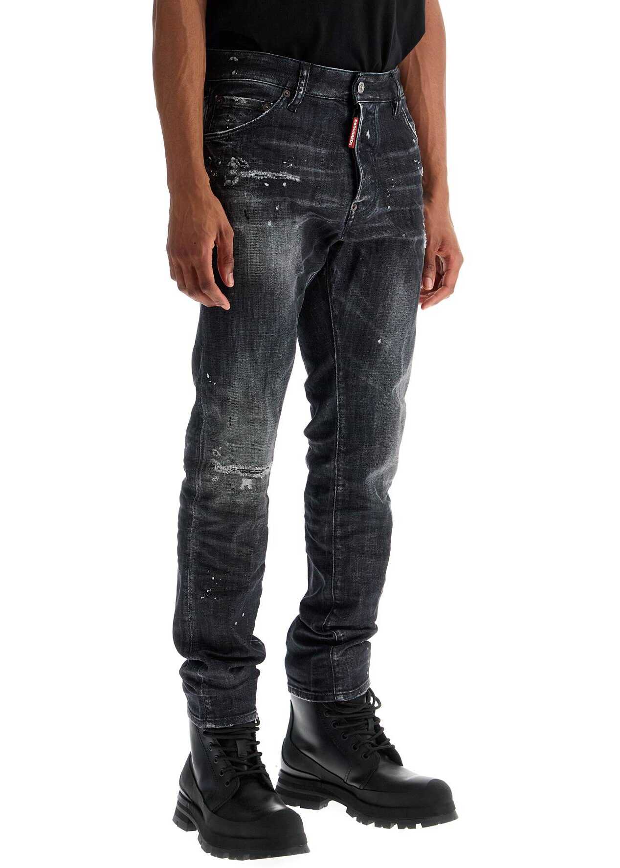 DSQUARED2 Cool Guy Jeans are black slim fit jeans with paint splatters. Made in Italy with stretch cotton, they offer unique comfort and style. Perfect for expressing individuality with elegance