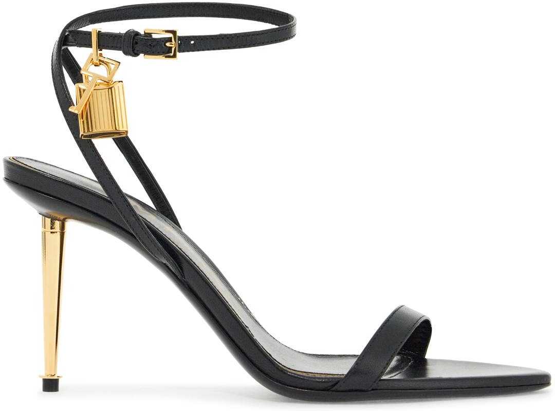 TOM FORD women's sandals in black goat leather with 10 cm heel. Italian elegance, comfort, and timeless style. Metallic details and versatile design for formal and casual chic occasions. Authentic luxury for art lovers.