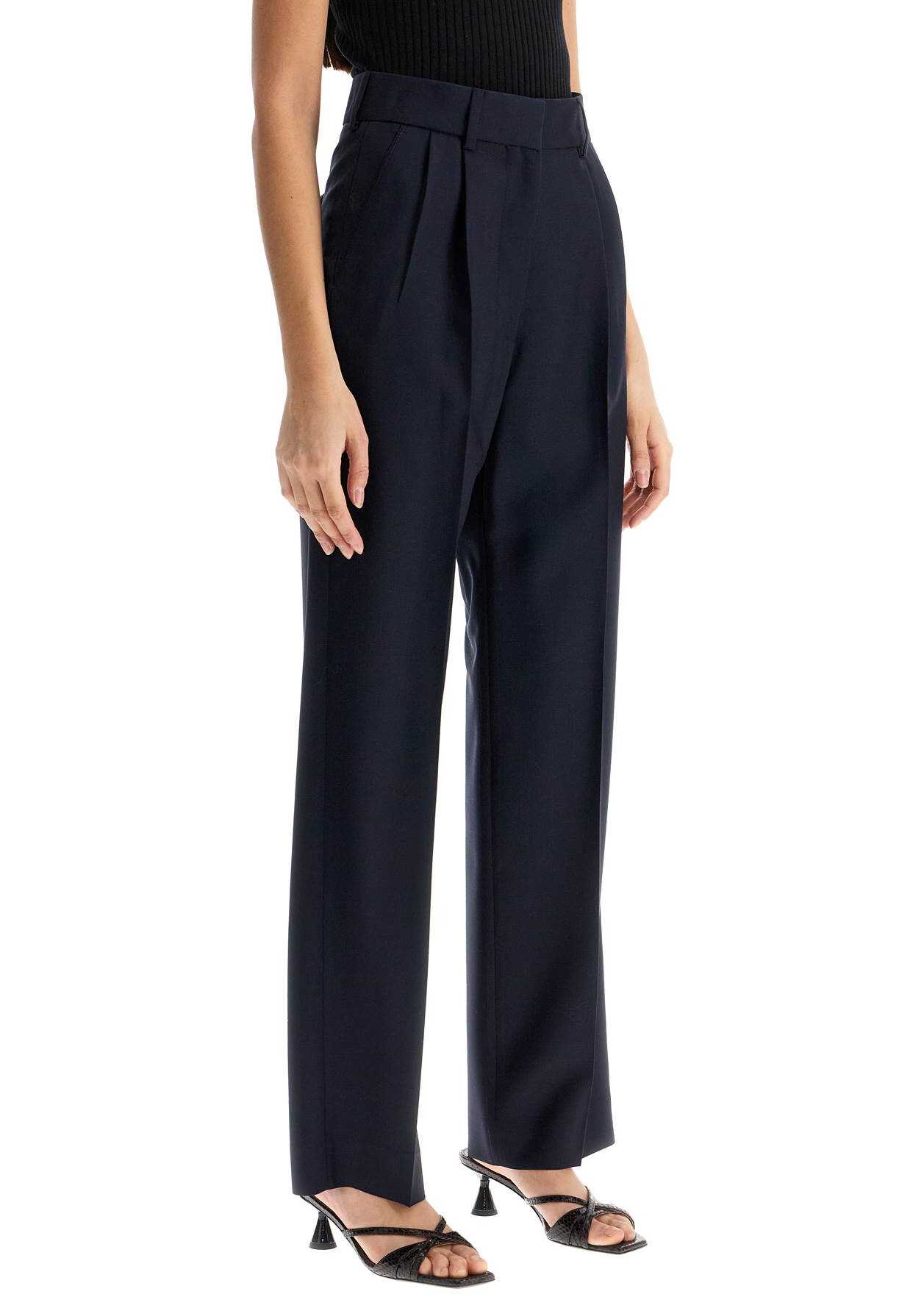 The FIRST CLASS FOX high-waisted pants by BLAZE MILANO offer timeless elegance. Made from virgin wool and mohair with a wide and straight cut in navy for a sophisticated and versatile look.