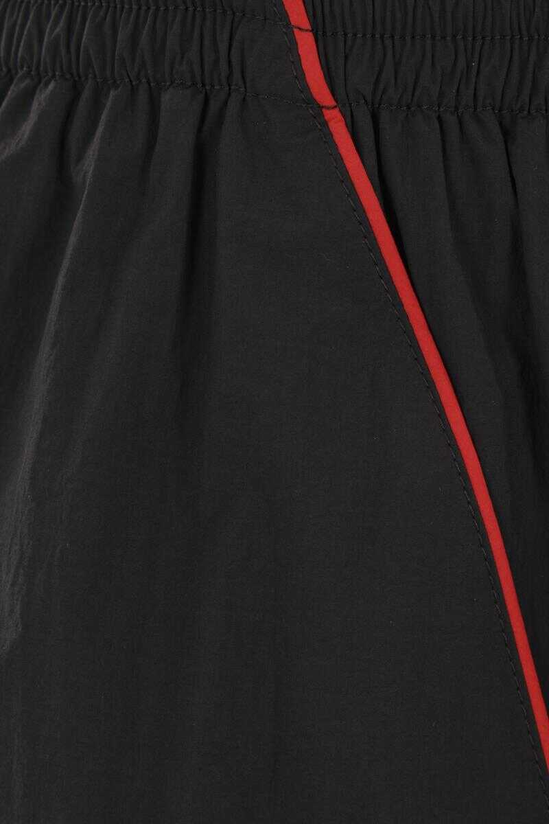 Balenciaga track shorts crafted in black nylon with contrasting piping and embroidered logo lettering along the sides. Featuring an elasticated waistband with drawstring, zipped side pockets, and a mesh-lined interior.
