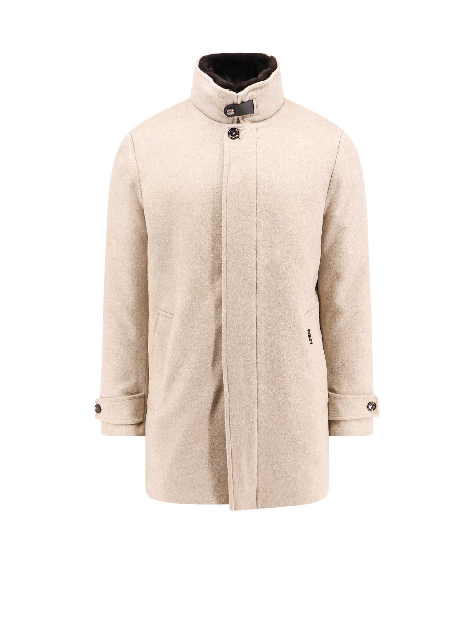 Hidden closure with zip and buttons, Two pockets on the front and single hidden pocket withg zip, Removable fur detail and leather strap, Made in Italy, 100% baby cashmere, Padding : 95% feather 5% plumelet