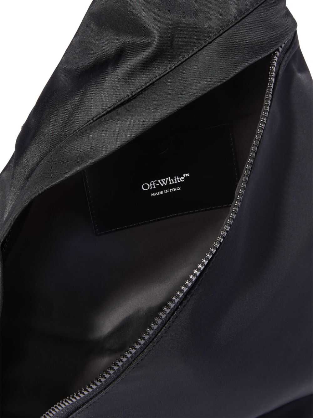 Stay stylish and organized with this sleek Off White Black Shoulder Bag. Crafted from 100% Calf Leather, it features a durable Fabric lining and spacious compartments. Perfect for the modern man on-the-go. Get yours today!