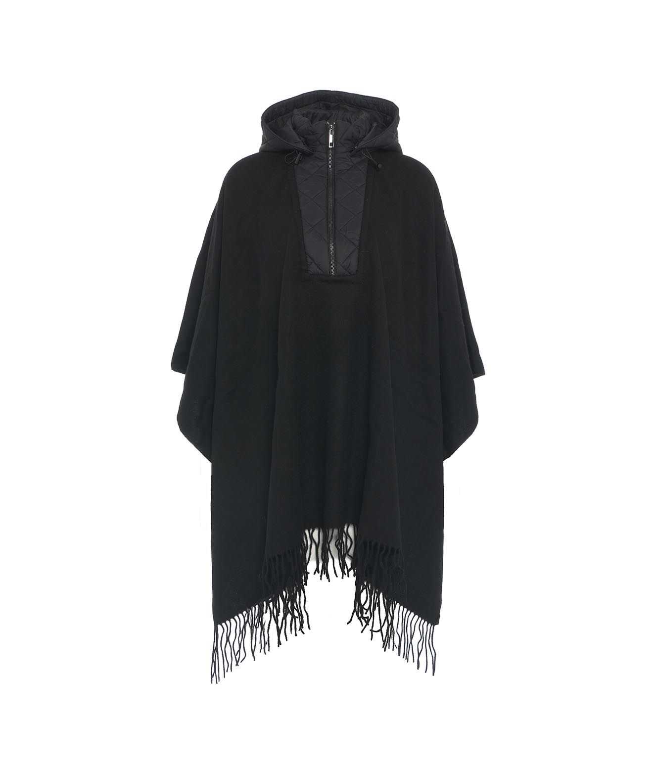 High collar, Logo details, Detachable hood, Hood with elasticated drawstring, Half front zip closure, Fringe detail