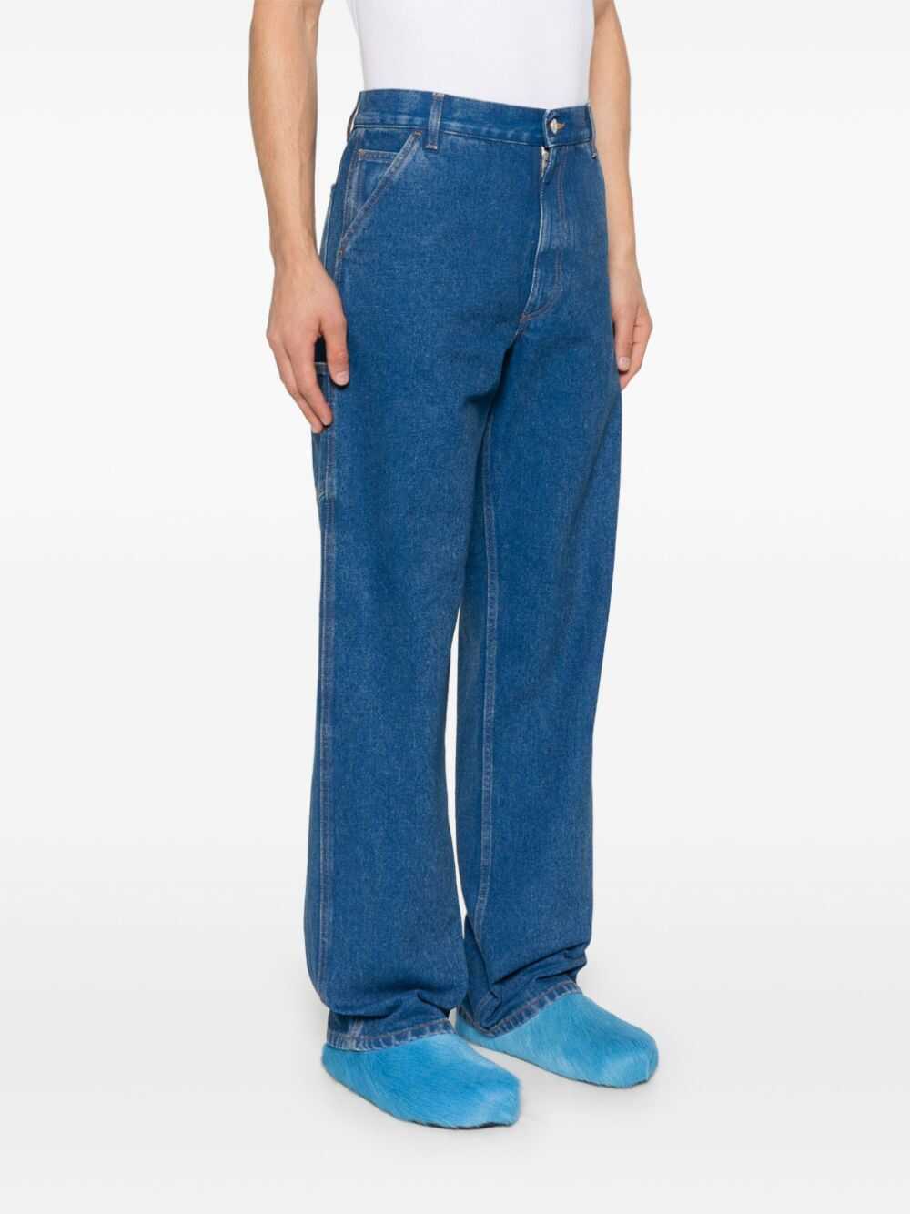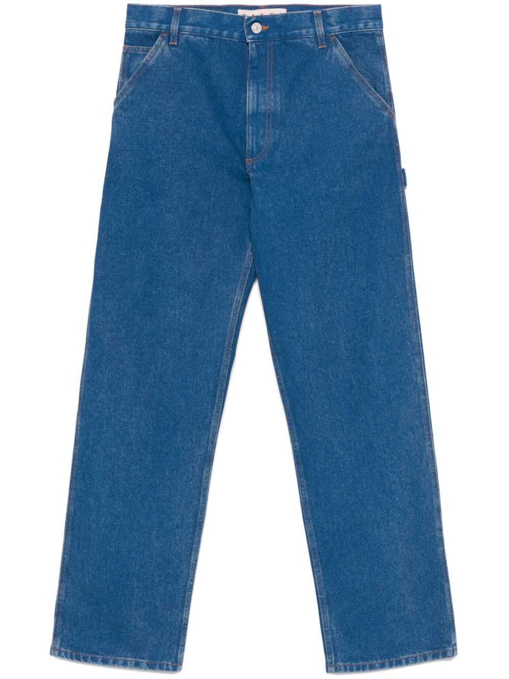 Marni Straight jeans Origin: Italy Characteristics medium blue organic cotton denim Front closure with buttons and zip passers-by five pocket design two side patch pockets rear application with logo side strap detail straight cut This item is made at least 50% organic materials.