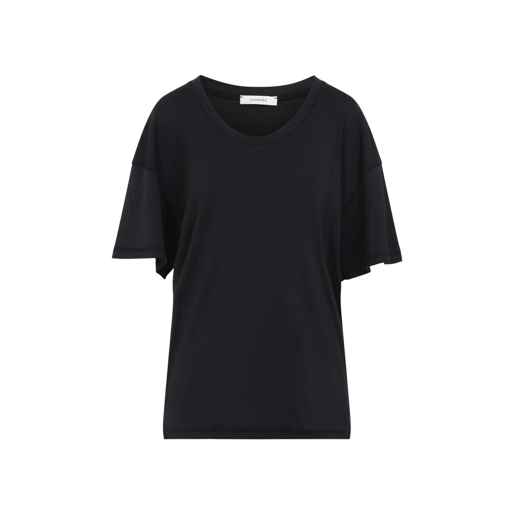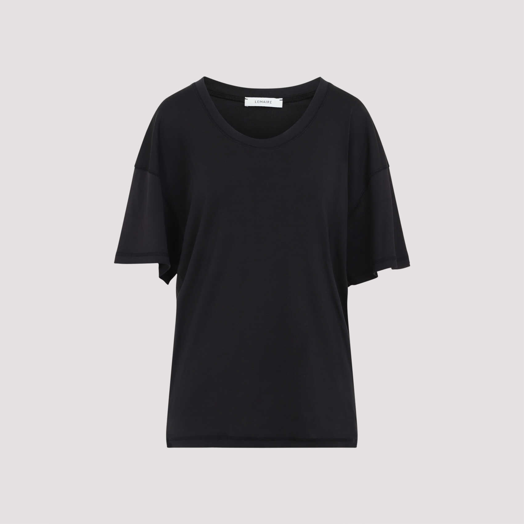 Lemaire Rib Squid ink Cotton T-shirt. Squid ink ribbed cotton jersey, open crewneck, dropped shoulders, short sleeves, straight hem, loose fit.