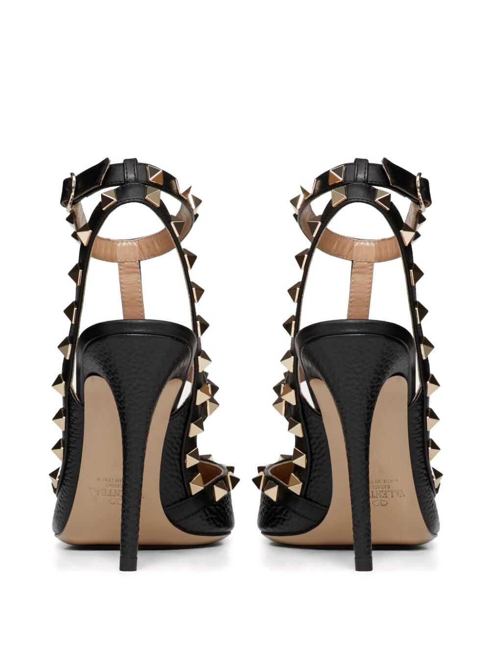 Valentino Garavani Rockstud Pumps Origin: Italy Characteristics black skin hammered texture Gold colored Rockstud decoration ankle band pointed design side closure with buckle leather insole with logo 100mm stiletto heel Composition Exterior: 100% calf leather, 100% metal Sole: 100% calf leather Lining: 100% goatskin