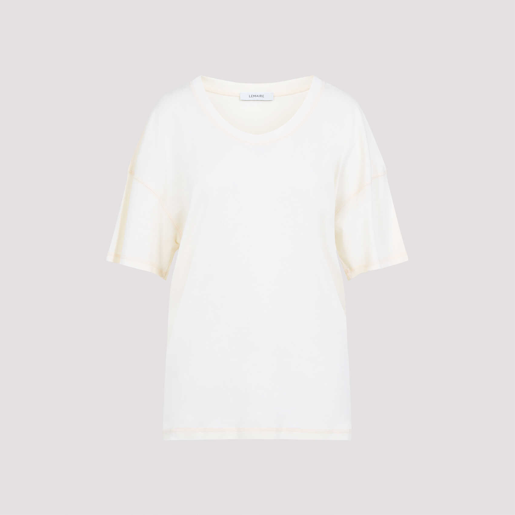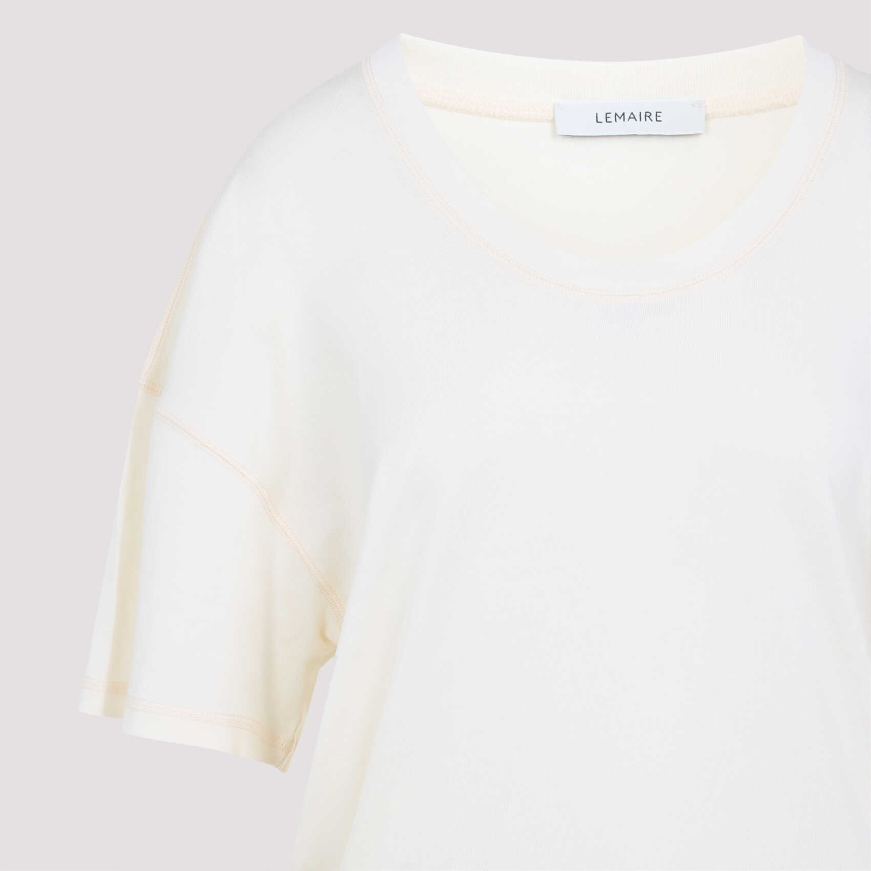 Lemaire Rib White Cotton T-shirt. White ribbed cotton jersey, open crewneck, dropped shoulders, short sleeves, straight hem, loose fit.