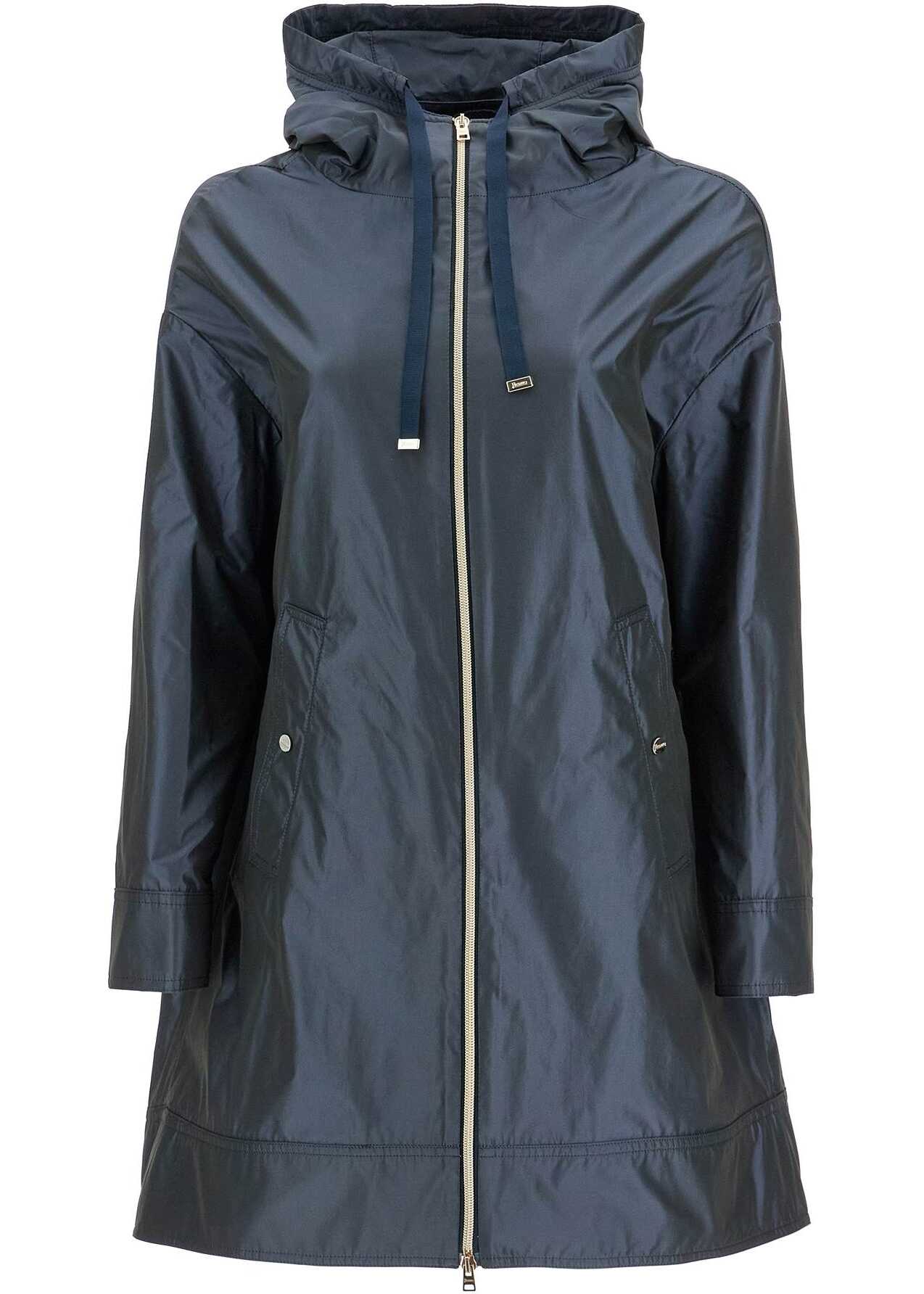 The HERNO Dark Blue Technical Taffeta Parka offers elegance and functionality. Waterproof with adjustable hood and practical pockets, it combines Italian style and comfort for versatile looks.