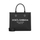 Dolce & Gabbana’s black canvas shopping bag featuring black leather top handles and profiles, logo lettering printed on the front, detachable canvas shoulder strap, internal button fastening and silver-tone metal hardware.