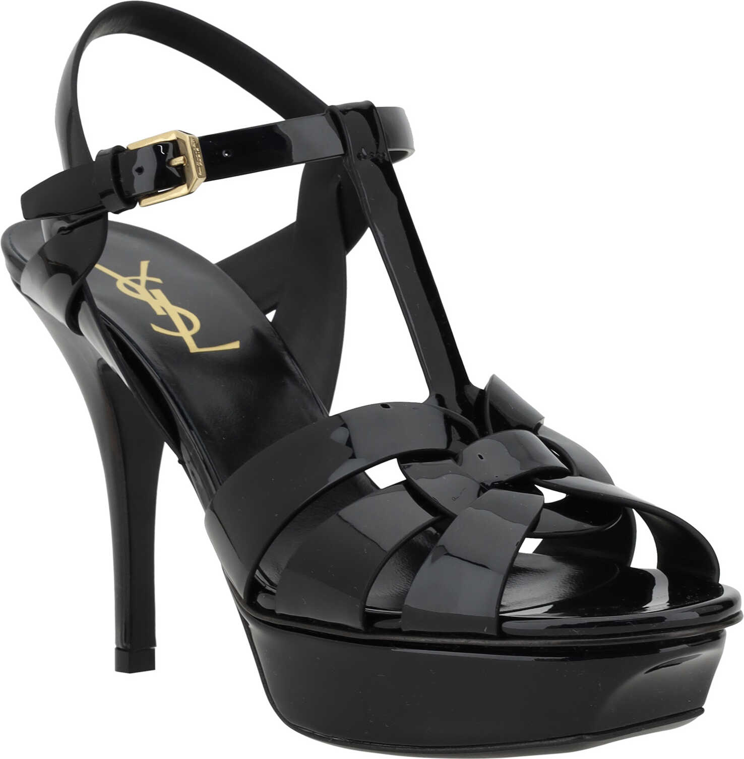 Saint Laurent's Tribute Sandals are a timeless classic that combines elegance and boldness. Featuring a caged design on the upper, these sandals offer a sophisticated and sensual silhouette, enhanced by a patent leather finish that lends a touch of shine. The ankle strap closure ensures a secure and adjustable fit, while the platform stiletto heel lends height without sacrificing comfort. The branded insole adds an additional luxurious detail.