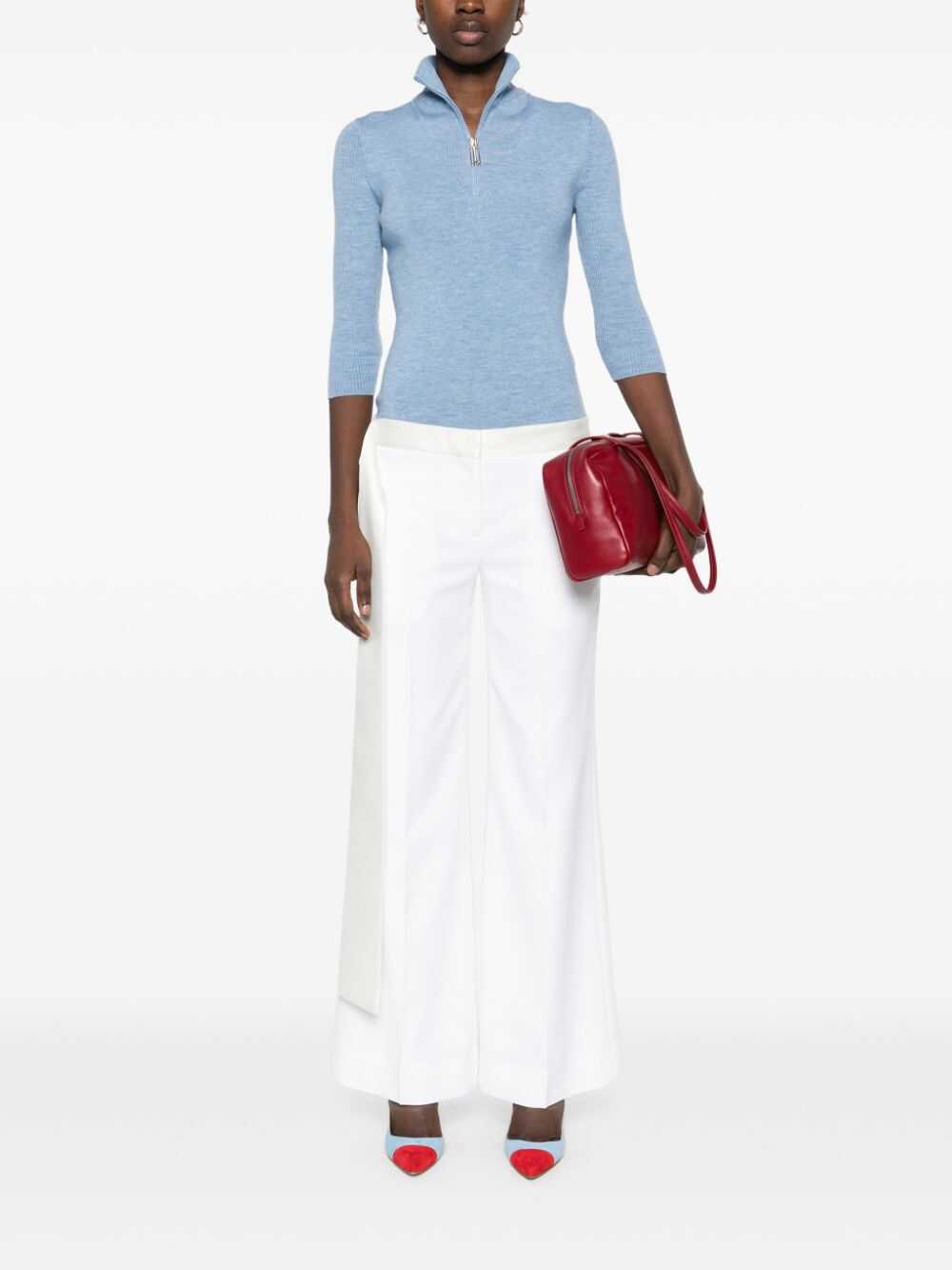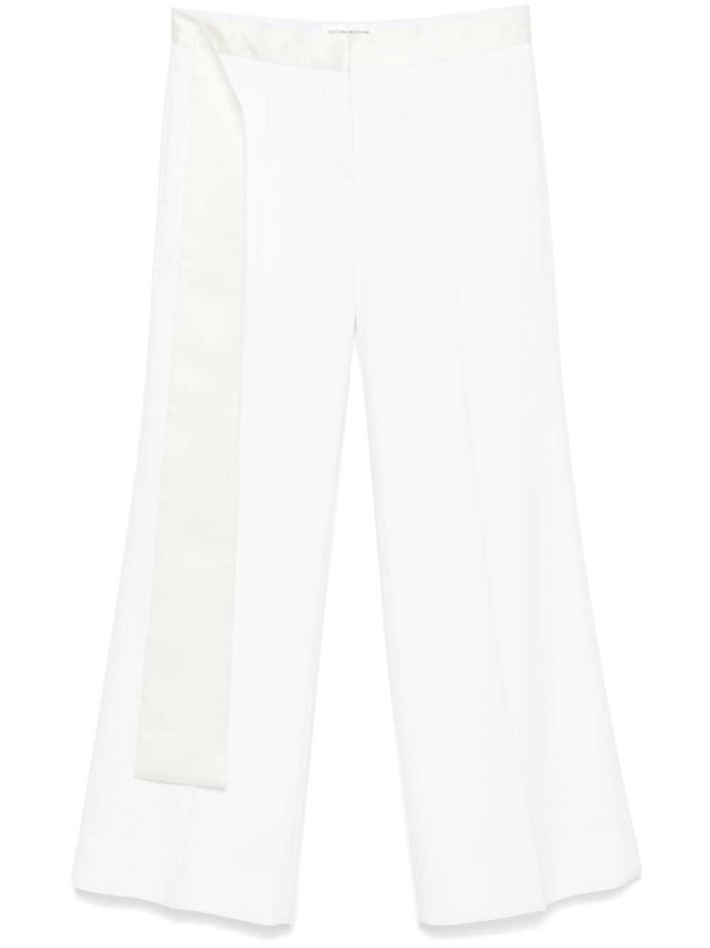 Elevate your wardrobe with the Victoria Beckham Trousers in pristine white. Crafted from a luxurious blend of polyester and wool, these stylish trousers offer both comfort and elegance. Perfect for any occasion, they redefine sophistication.