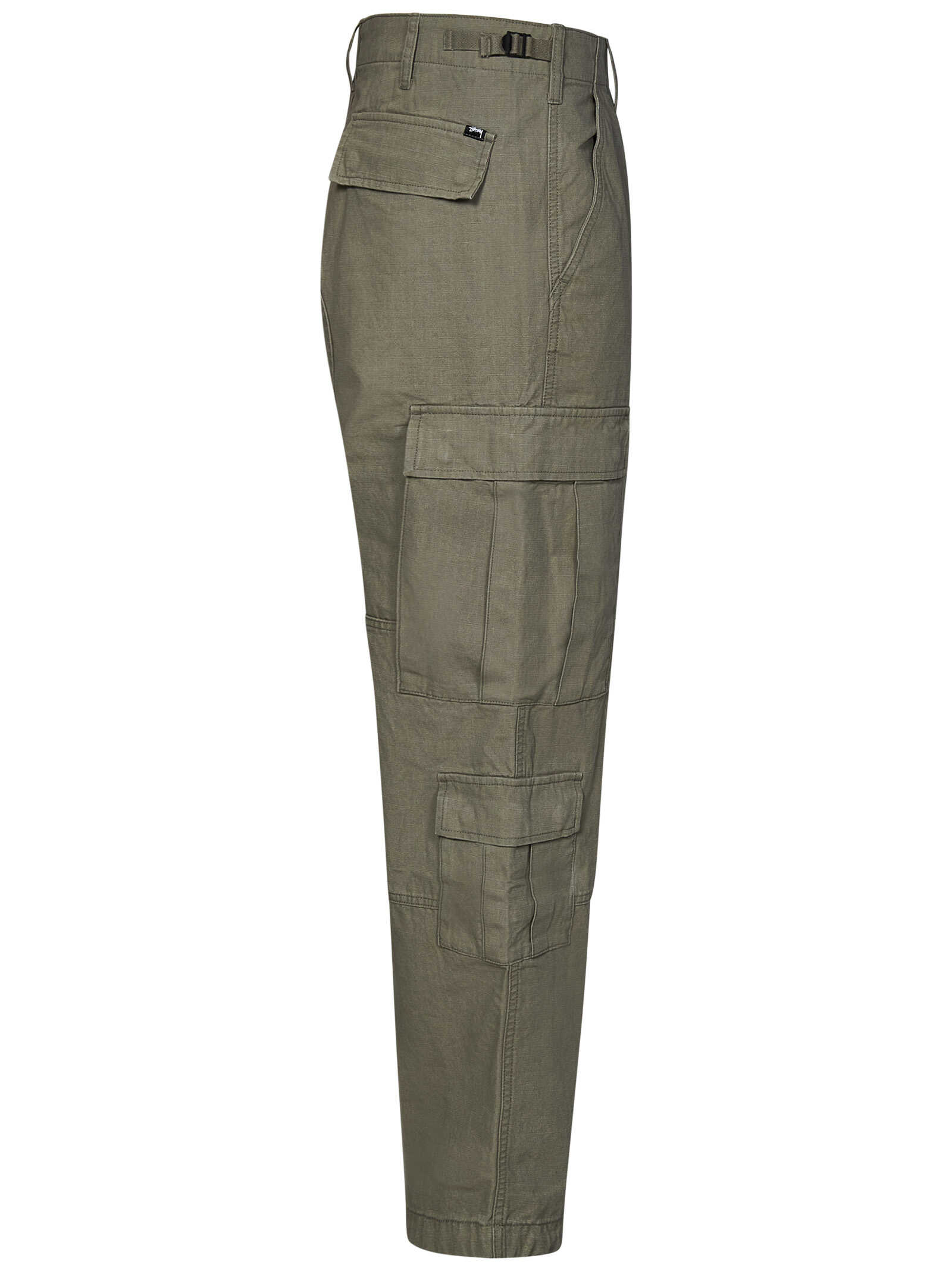 Elevate your style with these Stussy Green Cargo Trousers, crafted from durable olive green stonewash ripstop fabric. Perfectly designed with a drawstring hem, they combine comfort and trend. Ideal for any casual outing. Experience the fit and flair!