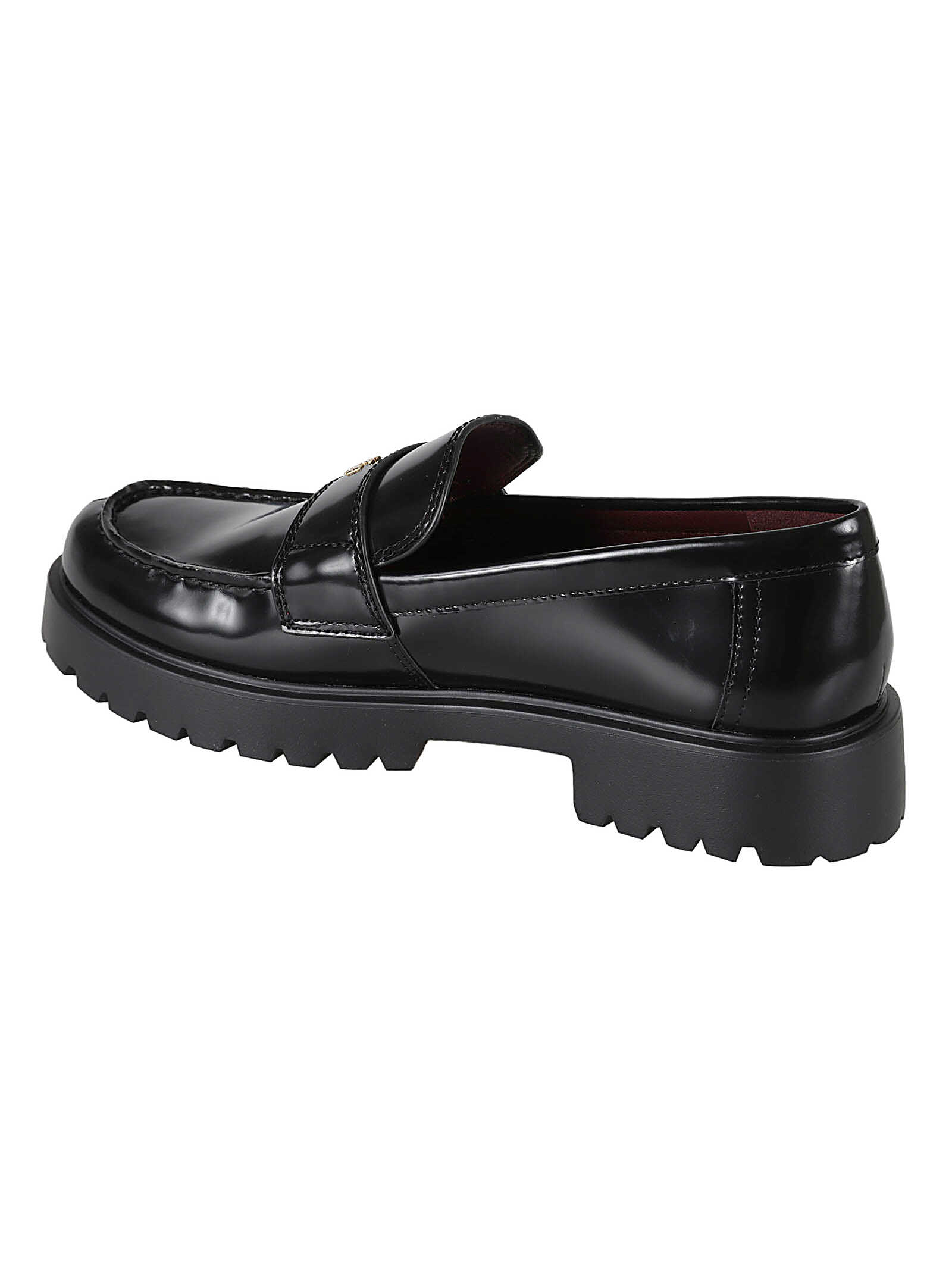 Step into elegance with these Tory Burch Black Flat Shoes. Crafted from 100% bovine leather, they feature a sleek slip-on design, iconic double T motif, and comfortable rubber lug sole. A perfect blend of style and comfort for any occasion.