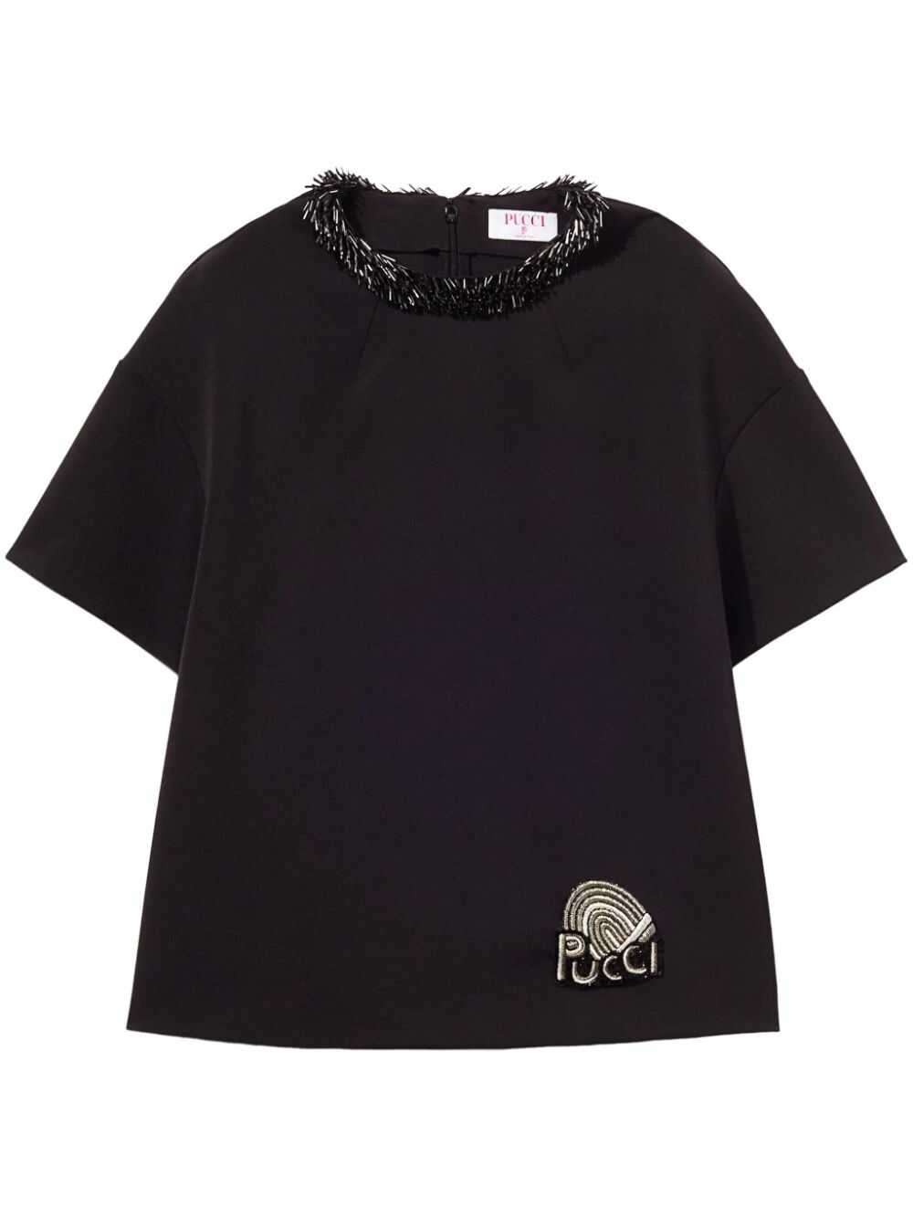 Elevate your wardrobe with the Pucci Black T-Shirt. Made from a luxurious blend of 92% polyester and 8% elastane, it offers a perfect fit and ultimate comfort. Ideal for any occasion, this stylish piece is a must-have for modern women.