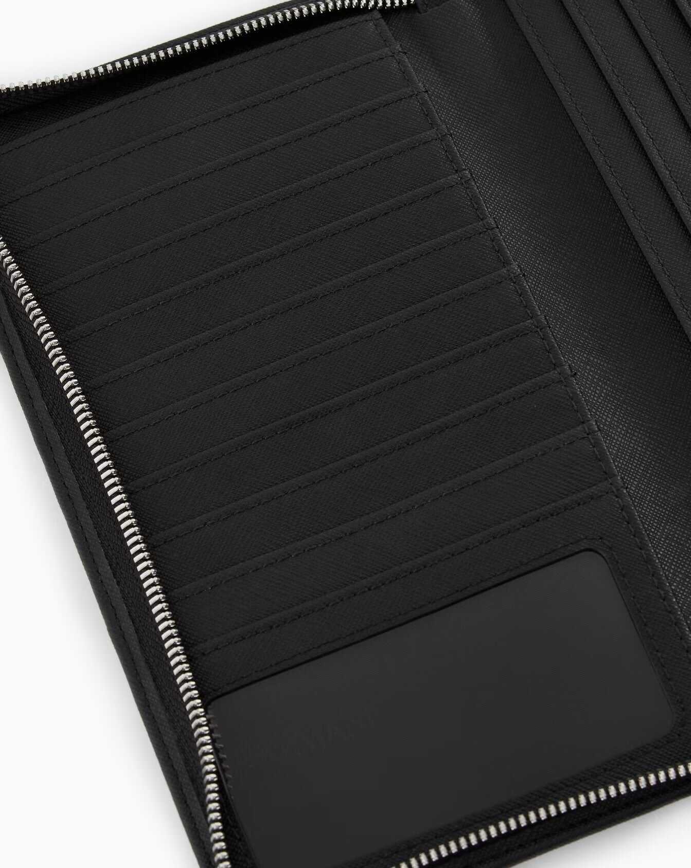 Elevate your style with the Emporio Armani Accessories. This sleek black organizer features a zip closure, hand strap, and ample storage for your essentials. Crafted from durable polyurethane, it combines luxury with functionality for the modern lifestyle.
