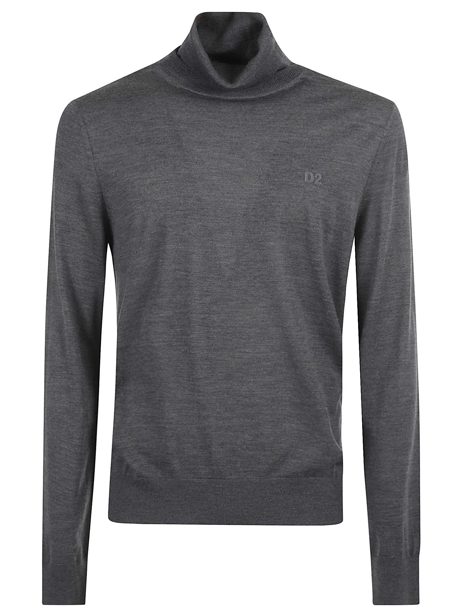 Elevate your wardrobe with the Dsquared2 Grey Sweater. Crafted from premium virgin wool, this fine knit piece features a stylish roll neck and an embroidered logo. Perfect for effortless chic, it combines comfort and sophistication in one.