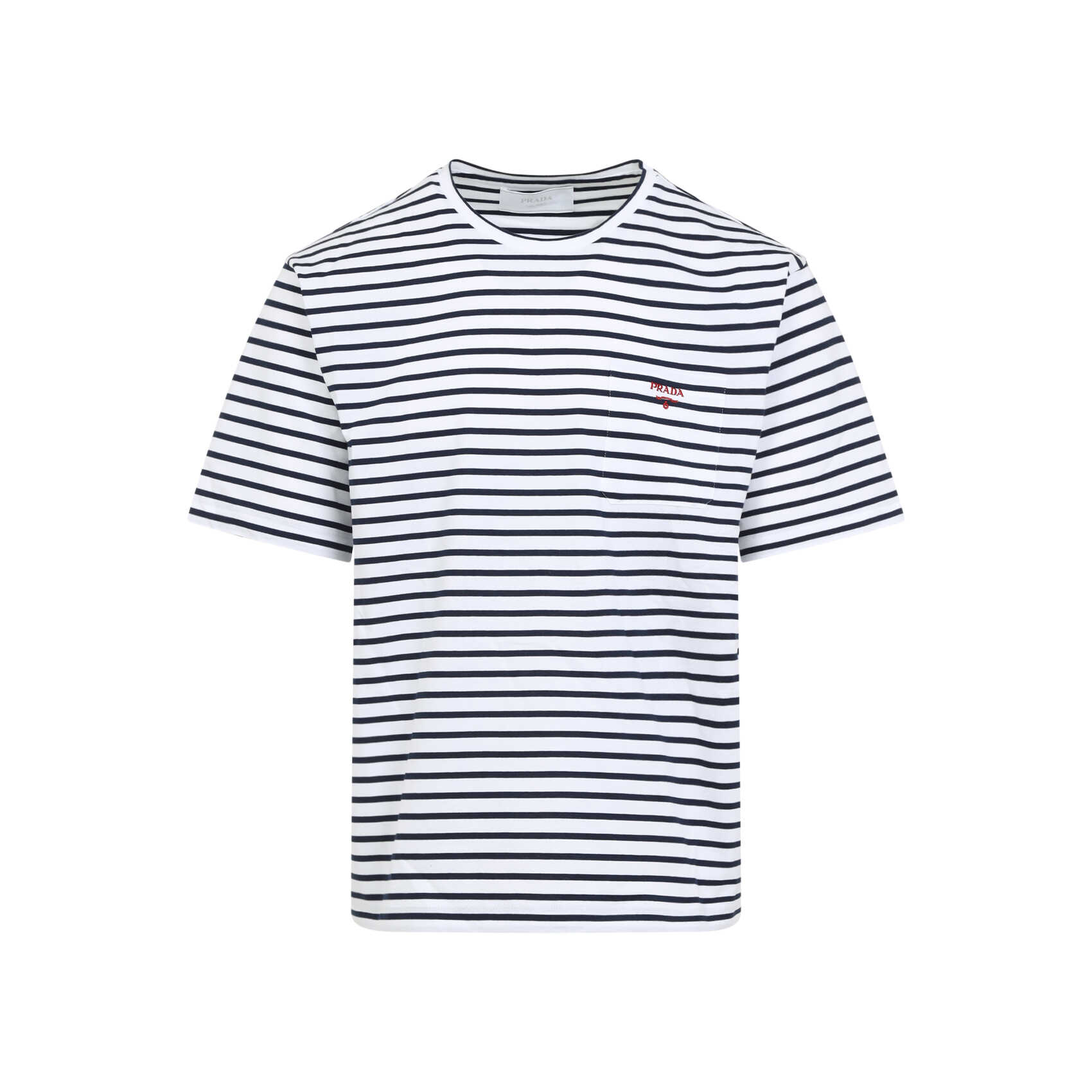 Elevate your wardrobe with the PRADA UJN929SOOO.1045 T-Shirt. Crafted from 100% Cotton, this stylish white tee offers unmatched comfort and a sleek look. Perfect for any occasion, it seamlessly blends luxury with everyday wear for the modern man.