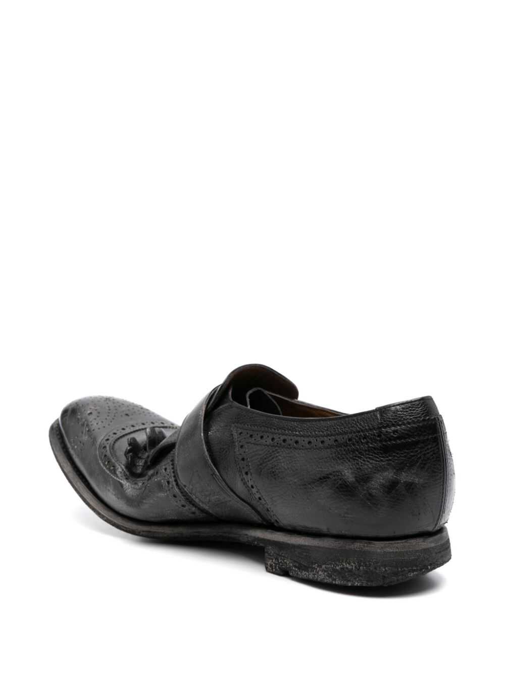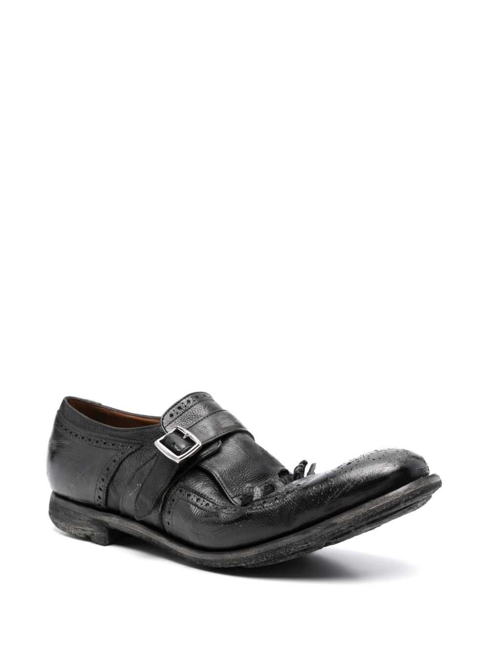 Church's Monks Shanghai Characteristics black calfskin finishing with a worn effect holes for buckle blunt tip fringed detail insole with WS logo leather lining low stacked heel rubber outer sole buckle closure Protect your purchases. This item comes with a protective dust bag. Composition Lining: 100% calf leather Sole: 100% rubber Exterior: 100% calf leather
